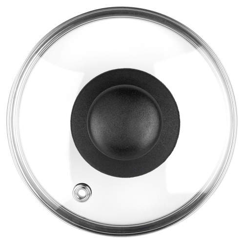 - Aus hitzebeständigem Glas- Deckel aus hitzebeständigem, transparentem Glas. Es hat einen Rand aus silbernem Edelstahl und einen Griff aus robustem schwarzem Kunststoff. Die transparente Farbe des Deckels ermöglicht es uns, den Garvorgang zu überprüfen, ohne ihn anheben zu müssen. Der Deckel ist beständig gegen hohe Temperaturen bis max. +200°C.