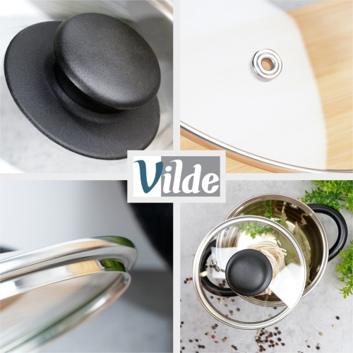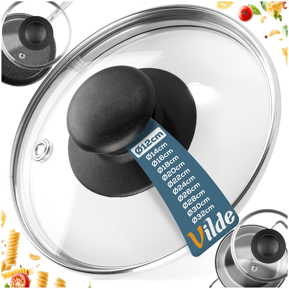 Universeller Glasdeckel, perfekt für Geschirr, Pfannen und Töpfe dieser Größe. Hergestellt aus langlebigen und soliden Materialien. Es ist eine tolle Ergänzung zu einem Topf oder einer Pfanne, die keinen Deckel im Set hat. Die klassische Form sorgt für eine komfortable Nutzung. Ein Deckel ist in jeder Küche unverzichtbar. Dadurch gart das Essen schneller und schützt vor Wasser- und Fettspritzern. Darüber hinaus sorgt der Deckel dafür, dass zubereitete Speisen länger heiß bleiben.Original Vilde-Produkt.Hergestellt nach europäischen Standards.