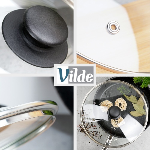Universeller Glasdeckel, perfekt für Geschirr, Pfannen und Töpfe dieser Größe. Hergestellt aus langlebigen und soliden Materialien. Es ist eine tolle Ergänzung zu einem Topf oder einer Pfanne, die keinen Deckel im Set hat. Die klassische Form sorgt für eine komfortable Nutzung. Ein Deckel ist in jeder Küche unverzichtbar. Dadurch gart das Essen schneller und schützt vor Wasser- und Fettspritzern. Darüber hinaus sorgt der Deckel dafür, dass zubereitete Speisen länger heiß bleiben.Original Vilde-Produkt.Hergestellt nach europäischen Standards.