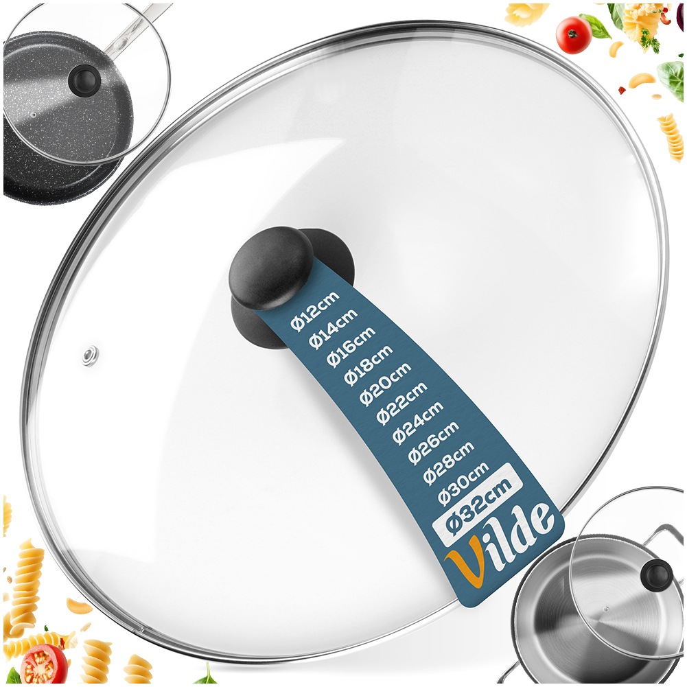 - Universaldeckel mit einem Durchmesser von 32 cm- Glasabdeckung mit Stahlrand und Griff. Der Deckel hat einen Durchmesser von 32 cm und eine Höhe mit Griff von 8 cm. In dieser Größe können damit alle Arten von Töpfen, Pfannen und Kochtöpfen abgedeckt werden.