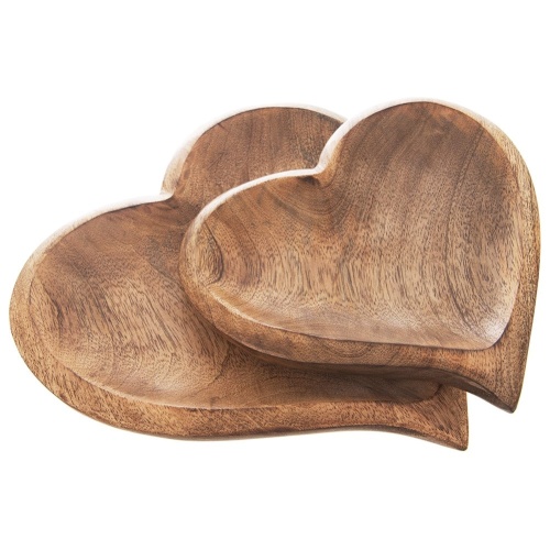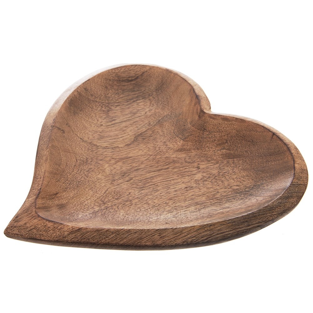 Ein herzförmiger Teller zum Servieren süßer oder salziger Snacks. Komplett von Hand aus Mangoholz gefertigt.