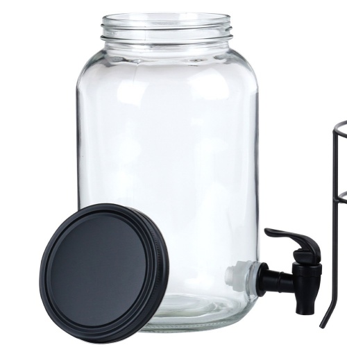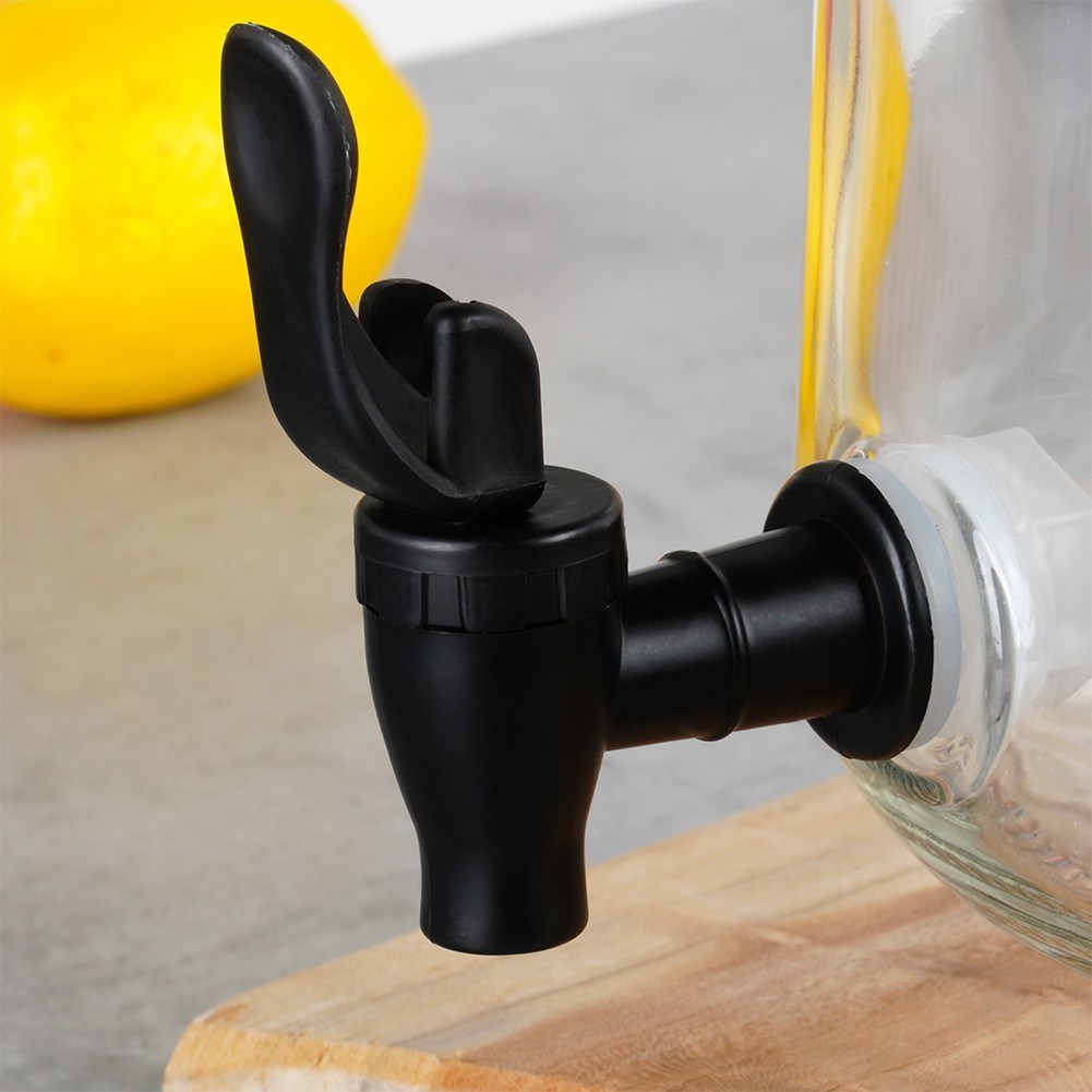 Ein Glas für Getränke mit einem Wasserhahn, ideal zum Servieren von Limonade an heißen Tagen oder Punch für Partys. Geeignet für Getränke mit Obst- oder Eisstücken.