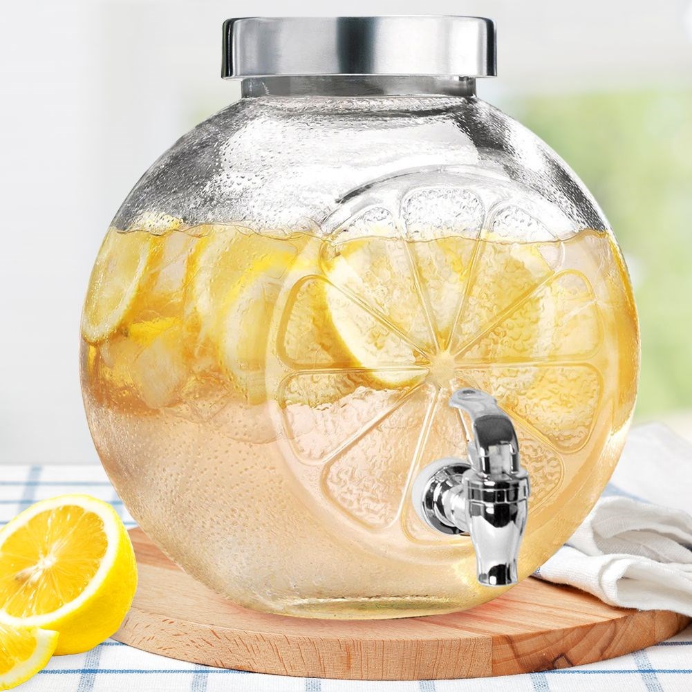 - Perfekt für Getränke- Distributor für Getränke mit einem 5,4 -Liter -Wasserhahn. Ideal zum Servieren von Limonade an heißen Tagen, Schlag oder Saft während einer Party. Das Glas hat die Form einer Zitrone und hat Abmessungen: 22 x 23 cm.