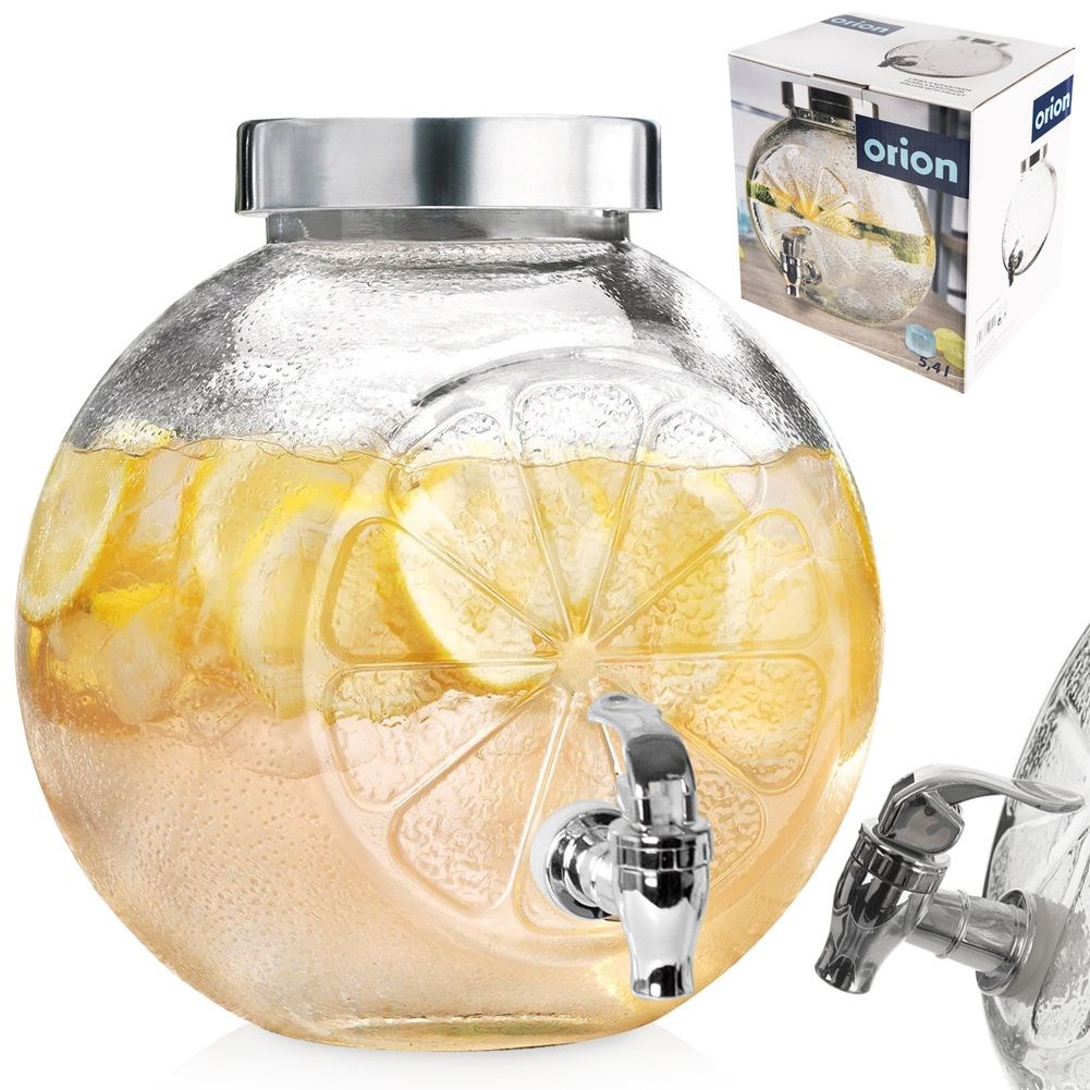 Ein Glasverteiler mit Zitronenhahn, ideal zum Servieren von Wasser, Limonade, Saft, gefrorenem Tee, gewürztem Wasser, aber auch Stanzen. Dank des Fassungen können wir Ihre Lieblingsgetränke auf effektive Weise problemlos servieren. Wir werden das Glas sowohl im Garten als auch während der Familienversammlungen verwenden. Dank der verschraubten Abdeckung werden keine Insekten in unser Getränk einsteigen. Nicht geeignet für heiße Getränke.Originalprodukt der tschechischen Marke ORION.Nach europäischen Standards hergestellt.