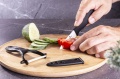 Keramikklinge, der Arbeitsteil des Messers und Schälers ist sehr scharf.