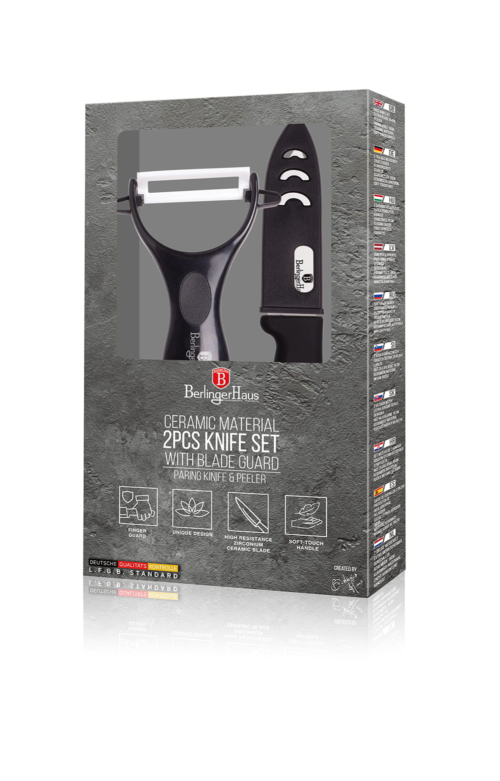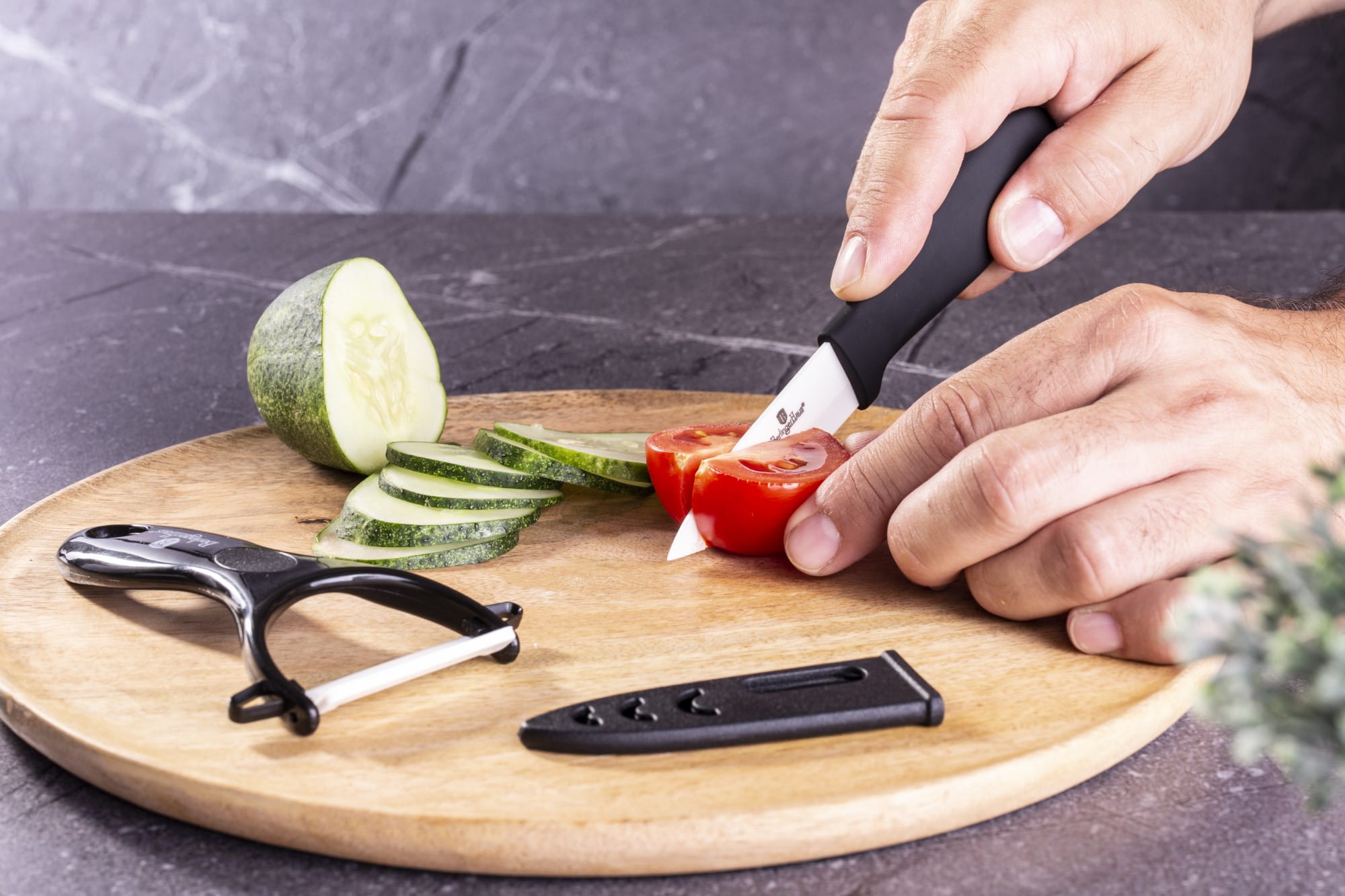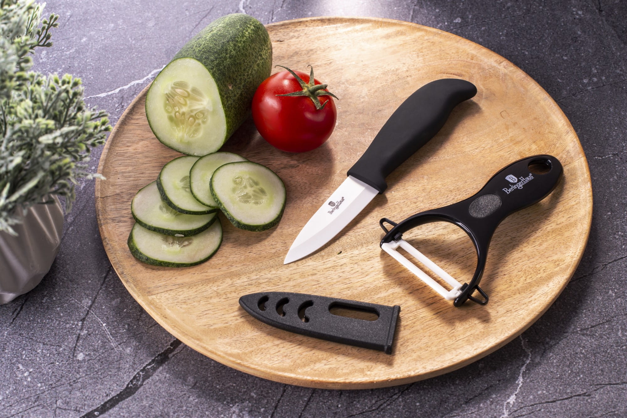 Keramikmesser-Set 18cm mit Gemüseschäler von BERLINGER HAUS. Sehr vielseitig, zum Schneiden und Schälen von Gemüse und Obst geeignet. Ideal für den täglichen Gebrauch zu Hause für eine Vielzahl von Kochaufgaben. Ergonomische Griffe für einen sicheren Halt in jeder Situation.