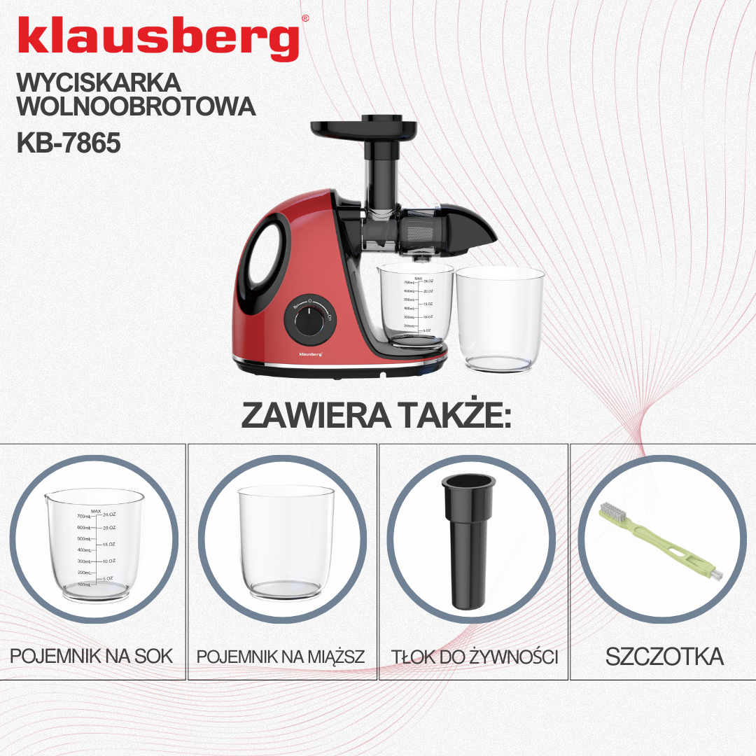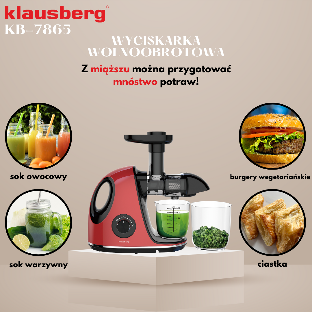 Langsam entsaftender Entsafter der Marke KLAUSBERG in kirschroter Farbe