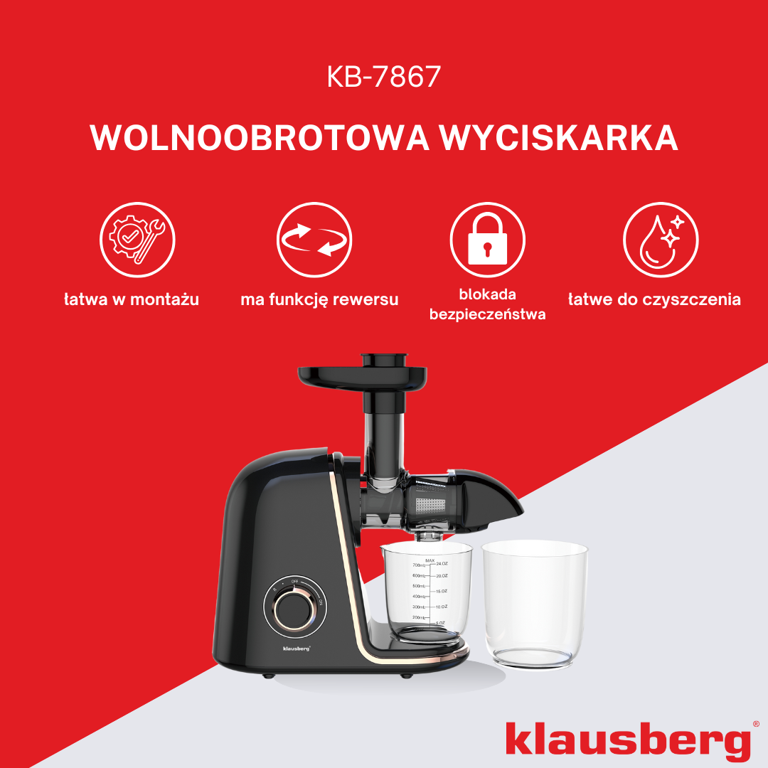 Langsamlaufender Entsafter 150W für Obst und Gemüse COLD PRESS KLAUSBERG KB-7867