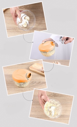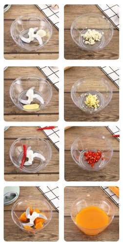 Die Schneidemaschine besteht aus einem Behälter und einem Kopf mit Schneidevorrichtung. Der Mechanismus ist mit 5 Klingen ausgestattet. Jede Klinge ist scharf und langlebig und gewährleistet ein präzises und effizientes Schneiden.