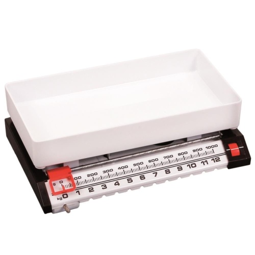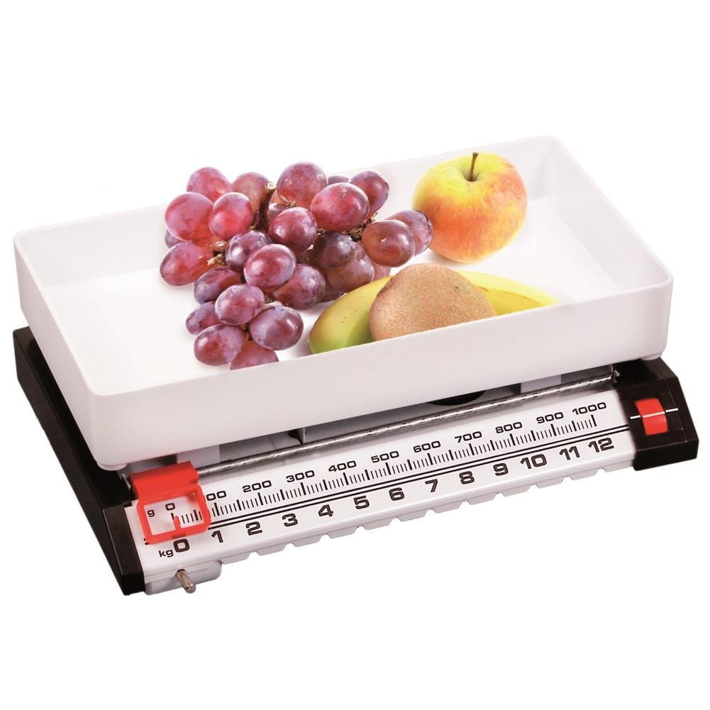 Eine praktische Küchenwaage mit einem Wiegebereich von bis zu 13 kg und garantierter Genauigkeit durch die Verwendung eines traditionellen Mechanismus.