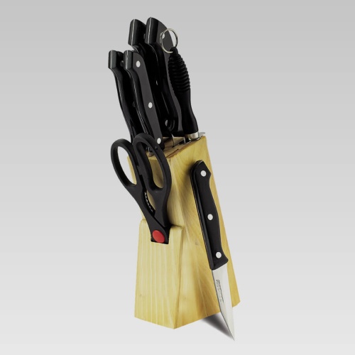 Eine Reihe von FirmenmessernMAESTROEs ist eine perfekte Kombination aus Funktionalität, Stil und Haltbarkeit. Dank des eleganten Designs und der hohen Leistung wird es sowohl im modernen als auch im klassischen Kücheninnenraum funktionieren. Dies ist ein Set, das die täglichen Aufgaben eines jeden Zuhauses (und nicht nur!) Koch erfüllt.