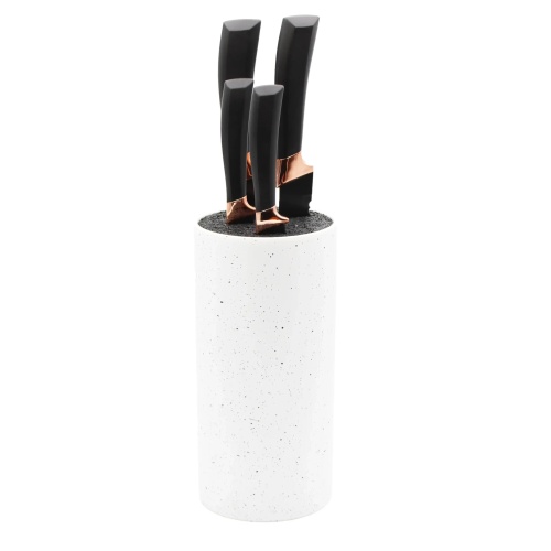 Der Messerständer von Brunbeste ist ein unersetzlicher Bestandteil jeder modernen Küche. Es besteht aus hochwertigem Material mit eleganter Marmoroberfläche und vereint Haltbarkeit, Funktionalität und Stil. Dank innenliegender Kunststoffstäbe, die sich der Form der Messer anpassen, ermöglicht es die sichere und bequeme Aufbewahrung vieler Klingen gleichzeitig – unabhängig von deren Form oder Größe.