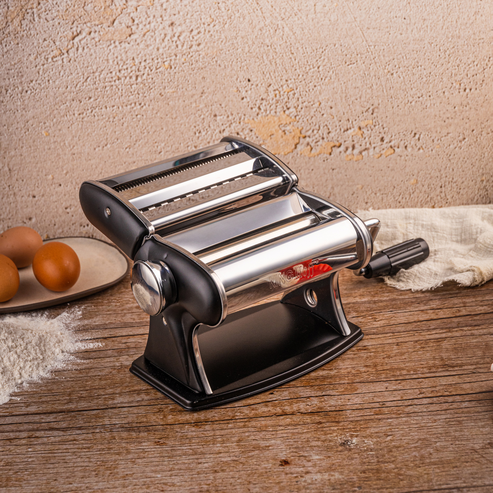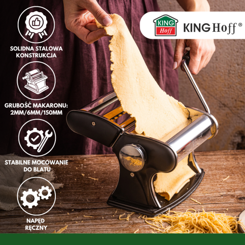 2-in-1-Nudelmaschine von KINGHoffist ein unersetzliches Gerät für Liebhaber der italienischen Küche und des hausgemachten Backens. Dank ihm bereiten Sie frische, aromatische Pasta genau wie in einer traditionellen Trattoria zu. Aus hochwertigem Edelstahl gefertigt, vereint es elegantes Aussehen mit außergewöhnlicher Haltbarkeit und präziser Bedienung.
