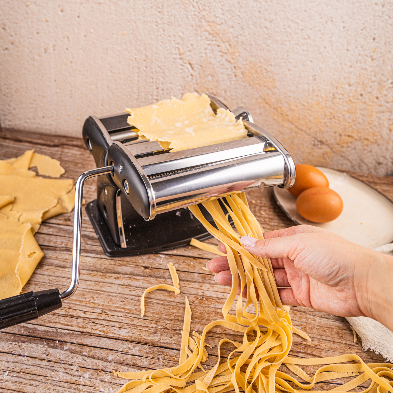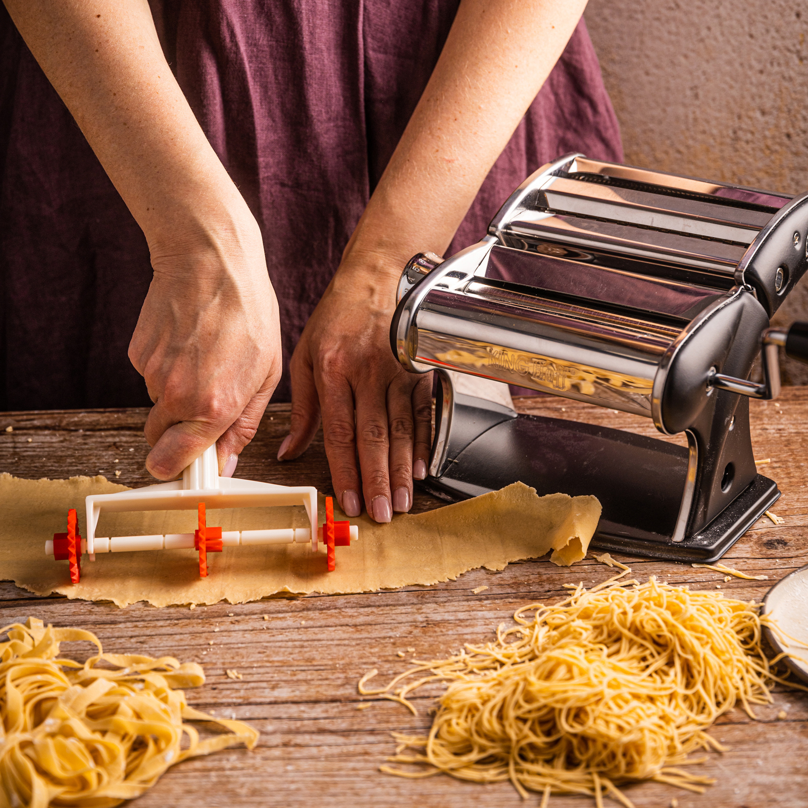 Sie können den Teig selbst ausrollen und schneiden und haben so die volle Kontrolle über Dicke, Breite und Struktur. Es ist das perfekte Werkzeug für alle, die Geschmack, Tradition und Qualität in der Hausmannskost schätzen.