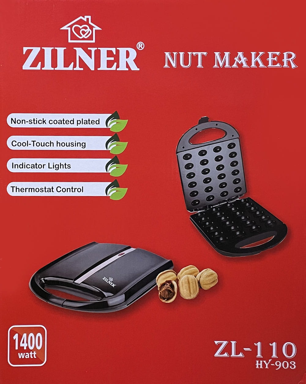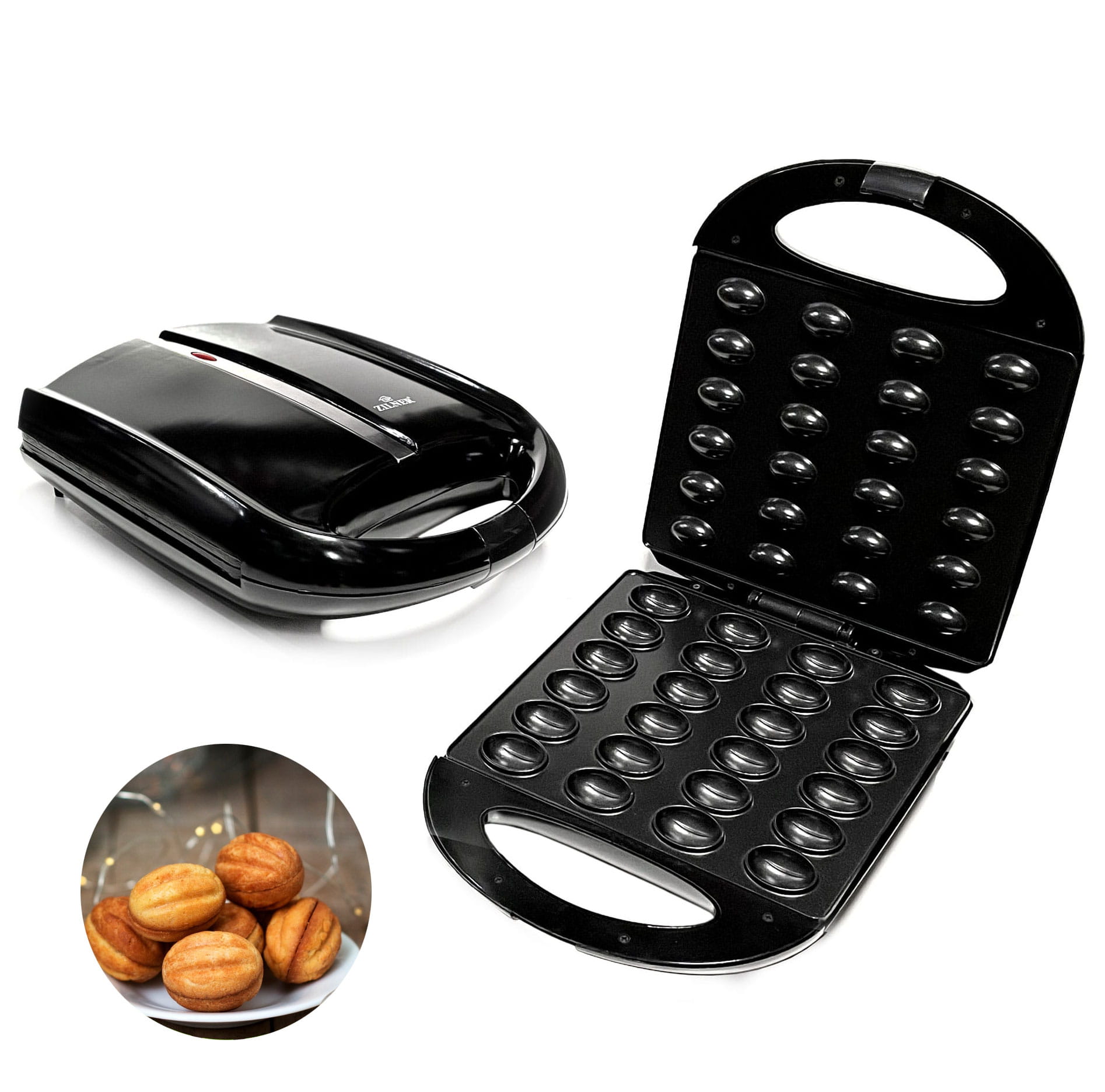 Nussbäcker Nussmaker Waffeleisen Oreschniza Nussform 24-er ZILNER ZL-110 Schwarz