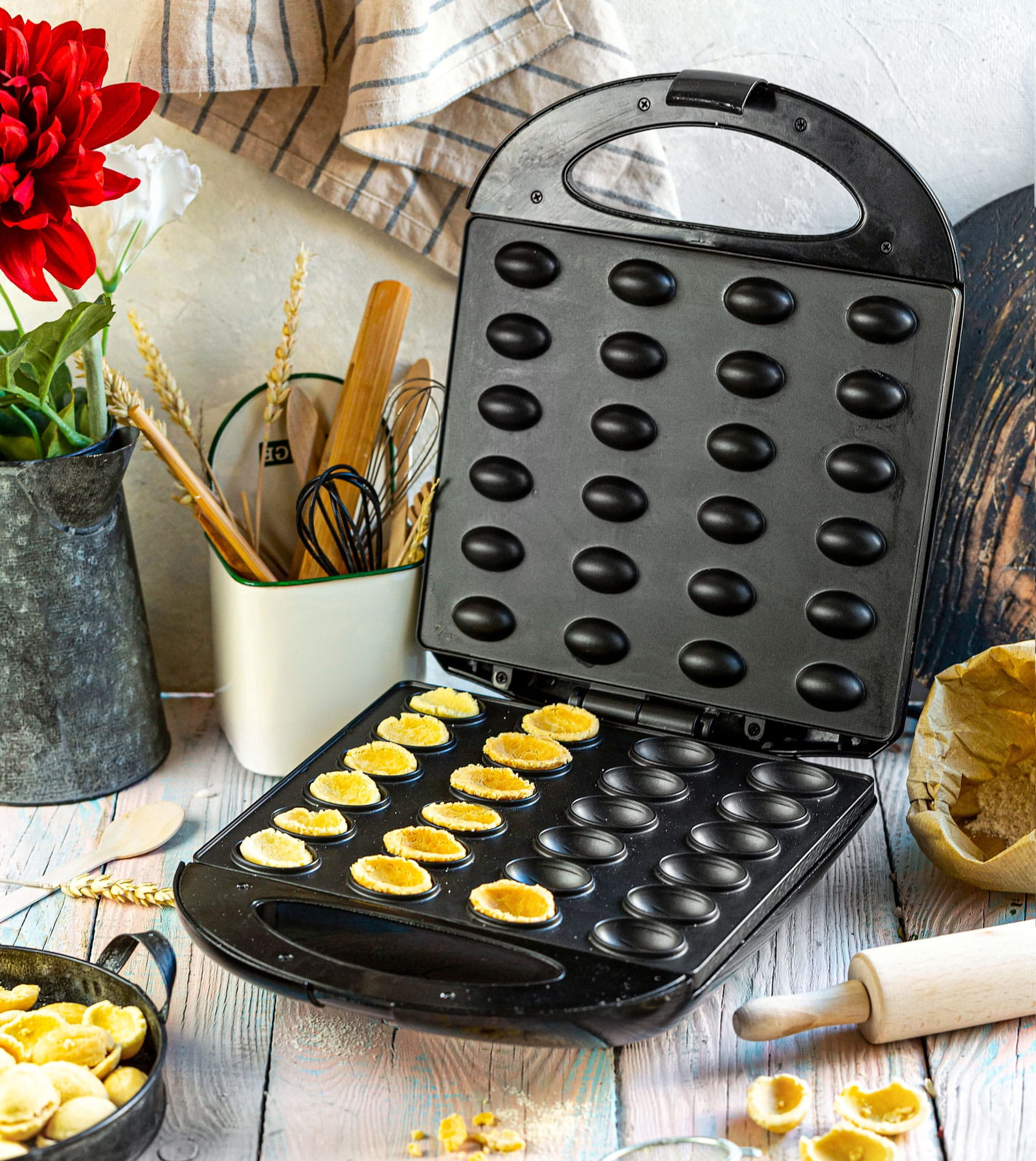 Elektrische Waffeleisen zum Backen von leckeren Nusshälften zum selber befüllen.