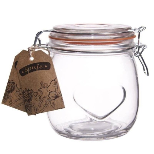 - ZUVERLÄSSIG- Behälter mit einem Deckel aus dickem Glas mit geprägtem Herzmuster und einem Clip aus hochwertigem Metall. Ausgestattet mit einer Dichtung aus orangefarbenem Gummi. Bei sachgemäßer Anwendung hält es viele Jahre.