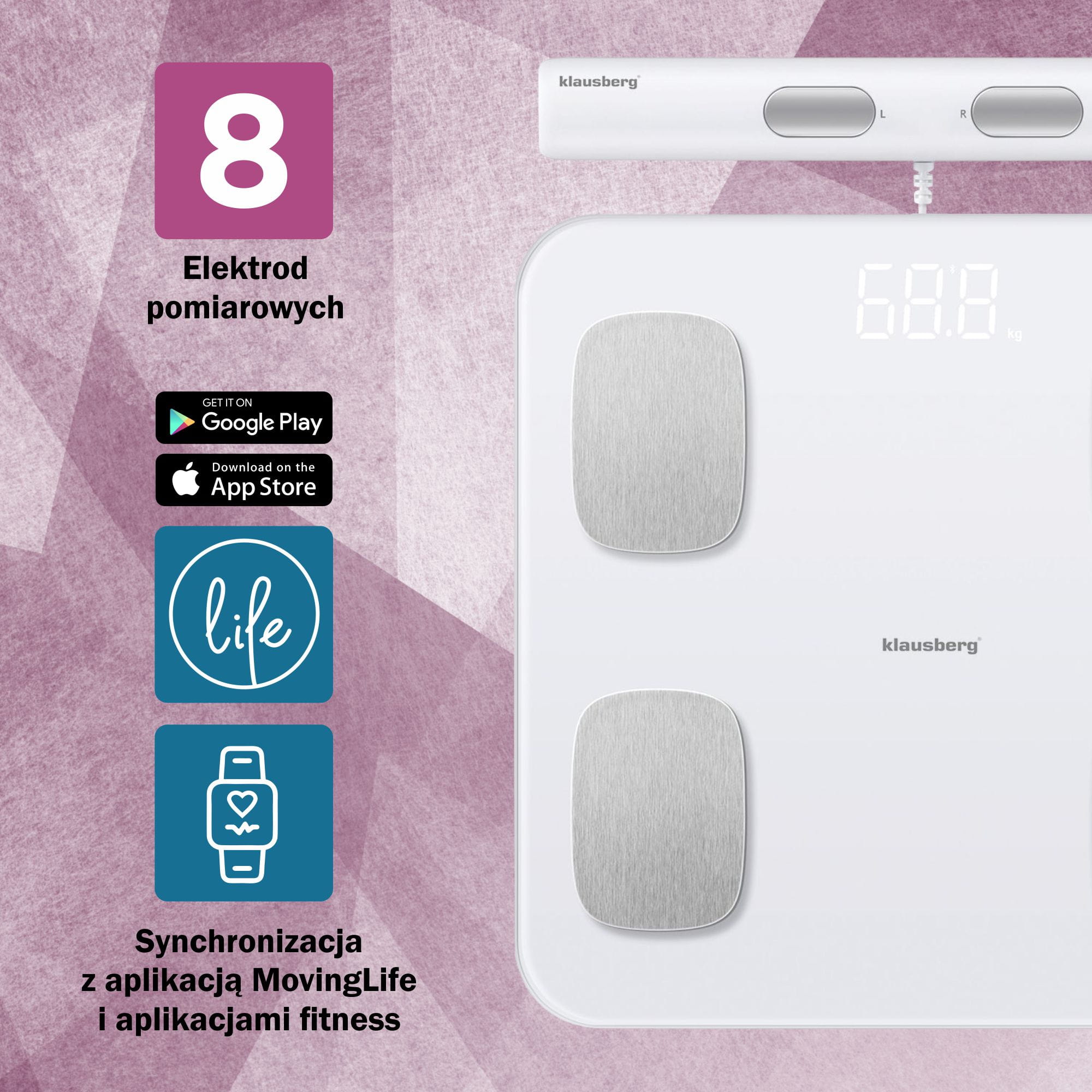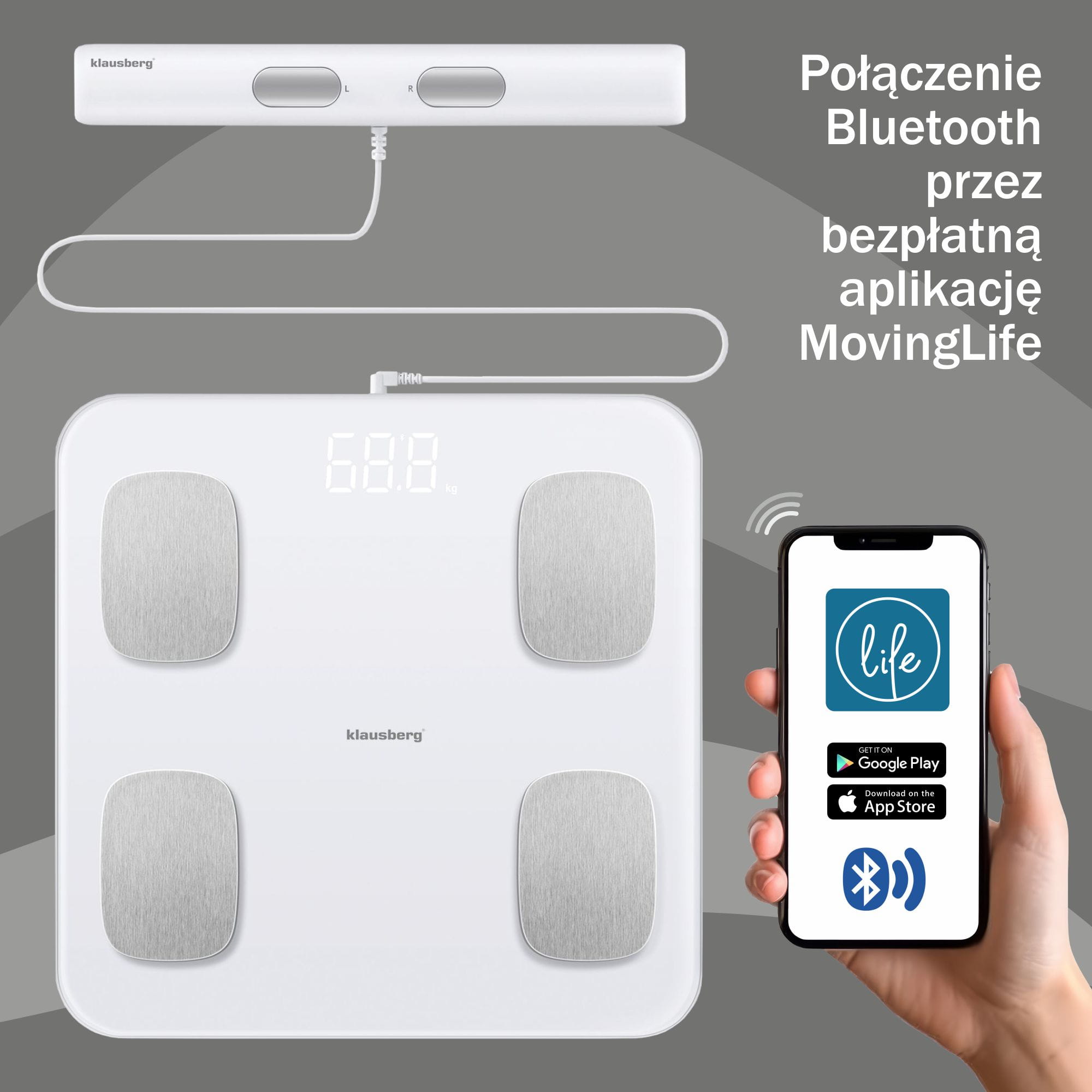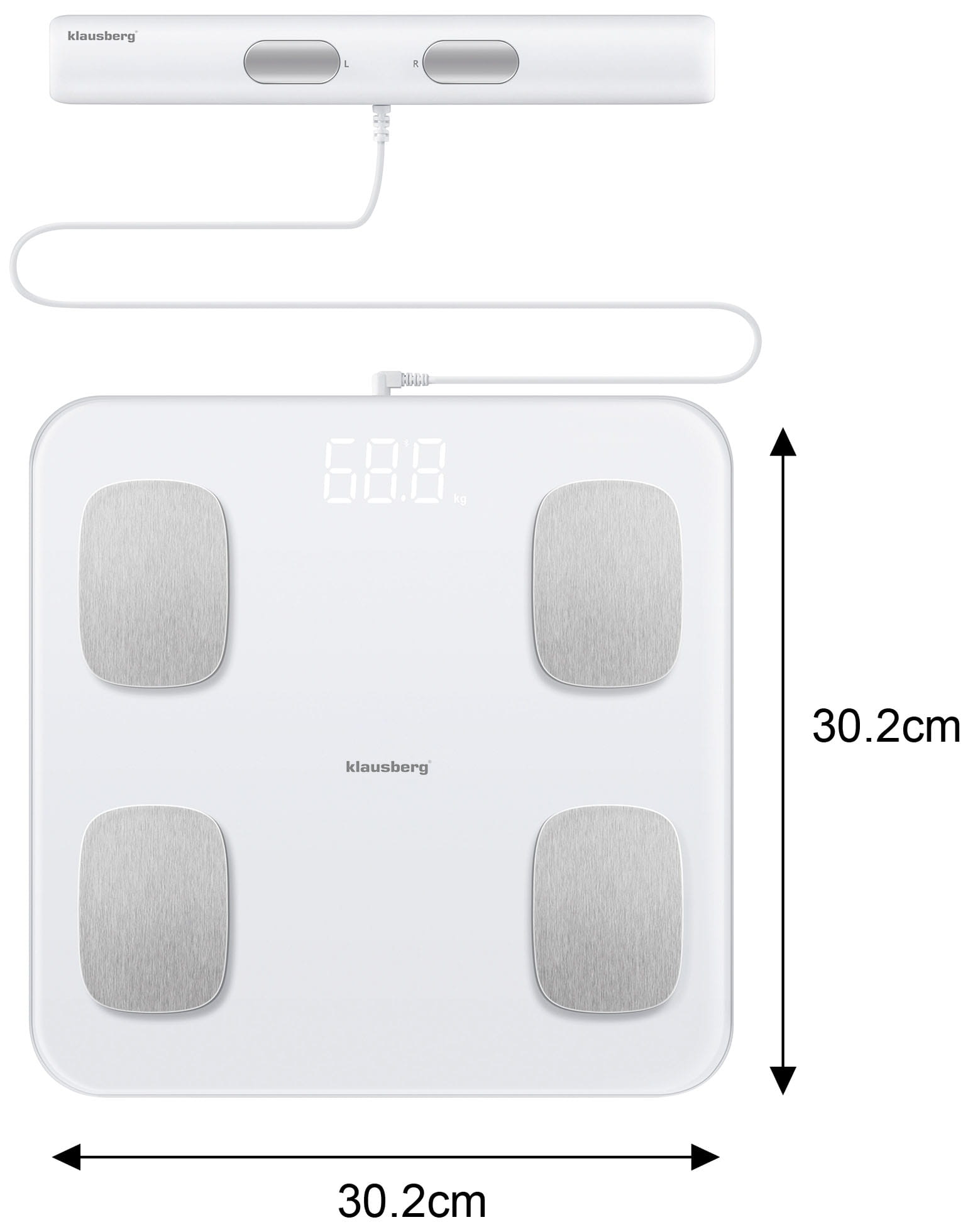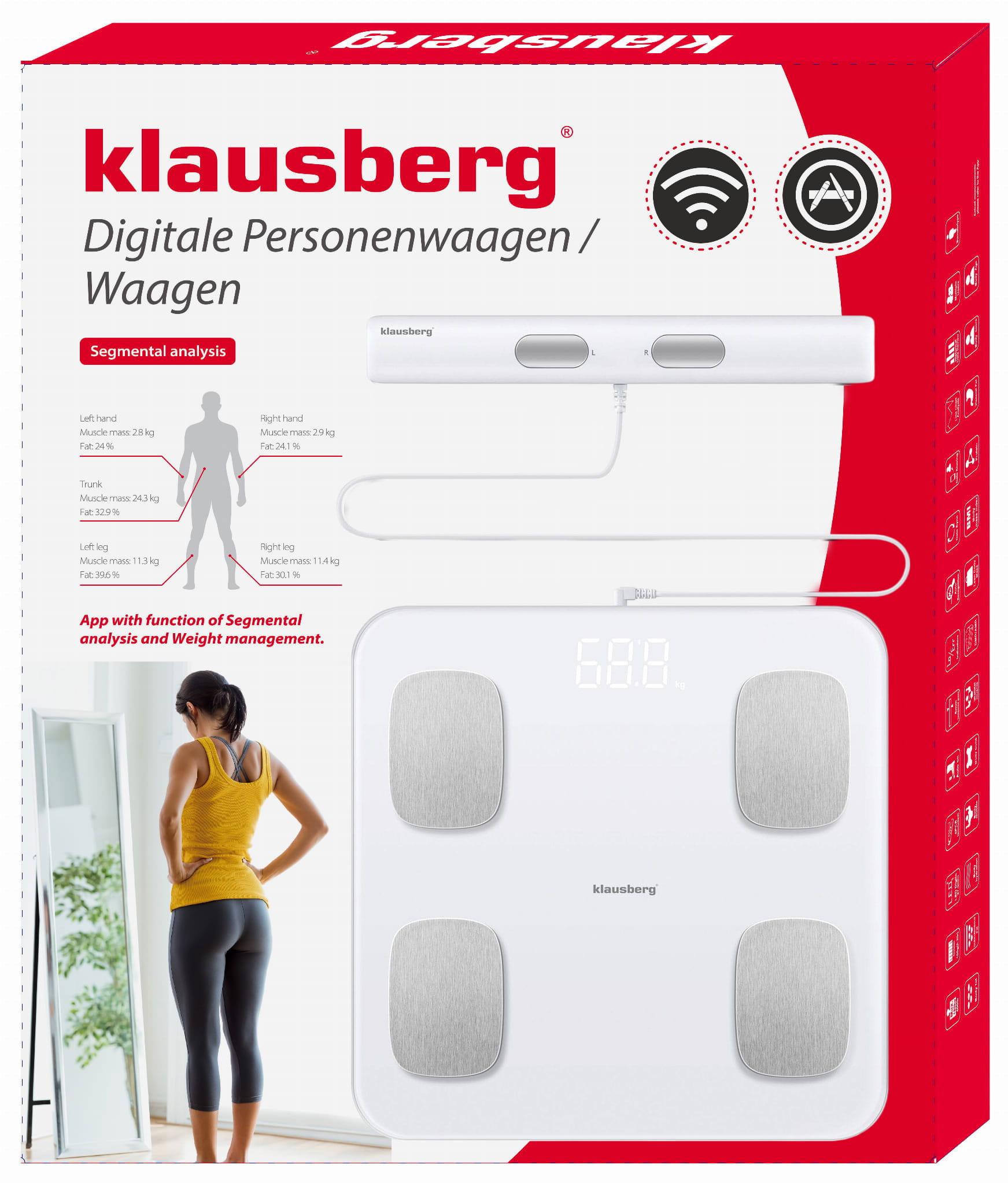 Personenwaage mit Körperfett- und Körperanalysewaage, Smart, BT, KLAUSBERG KB-7853 weiß