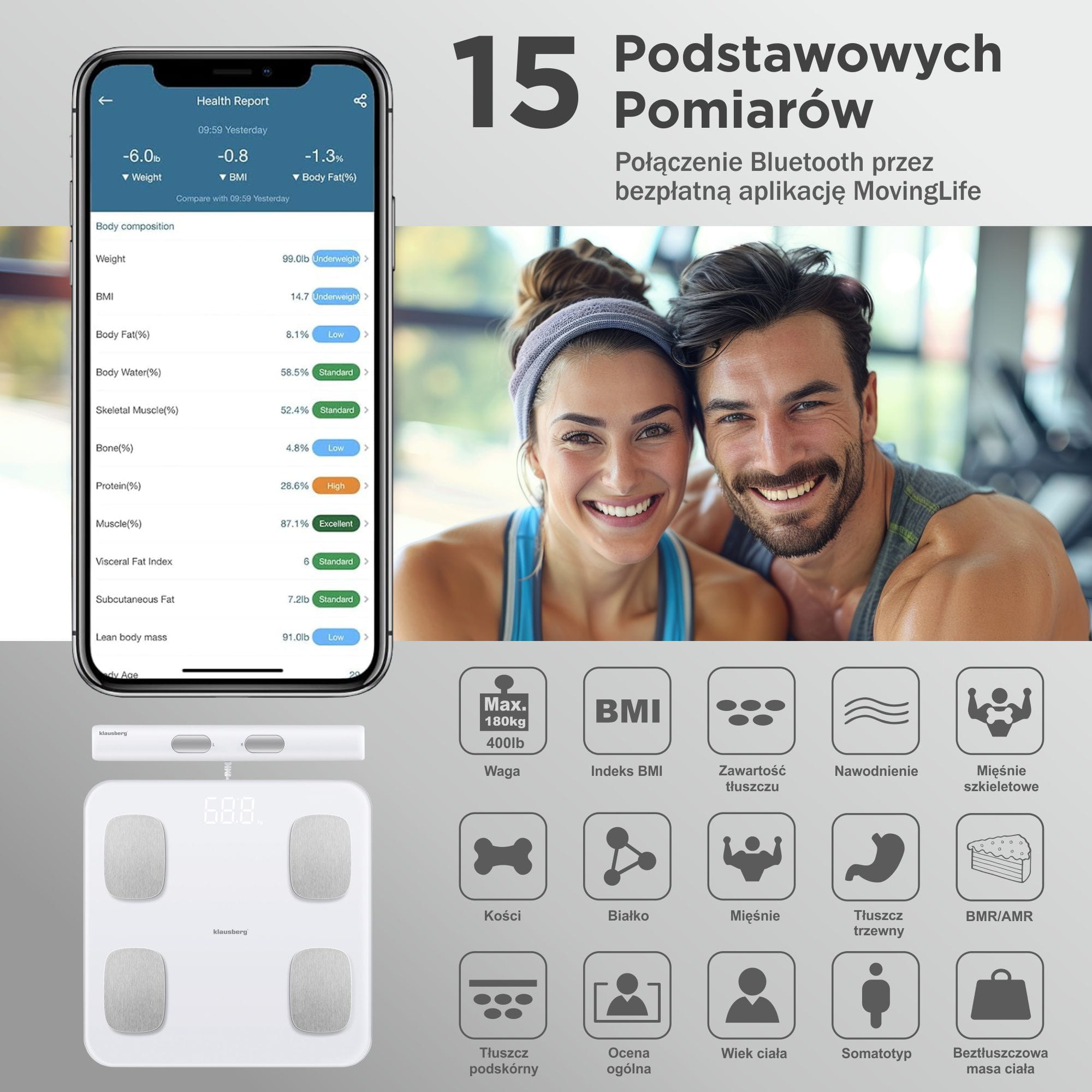 Die Badezimmerwaage KLAUSBERG KB-7853 ist die ideale Lösung für Menschen, die auf ihre Gesundheit und körperliche Fitness achten. Dank fortschrittlicher Messtechnologie ermöglicht das Gerät eine detaillierte Körperanalyse zu Hause. Modernes Design, weiße Farbe und intuitive Bedienung machen dieses Produkt nicht nur praktisch, sondern auch zu einer ästhetischen Ergänzung für jedes Badezimmer.