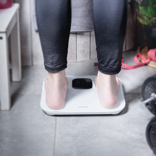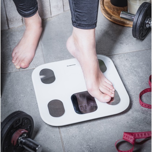 - Vielseitige Messwerte – die Waage ermöglicht die Verfolgung von Parametern wie Körpergewicht, BMI, Körperfettanteil, Körperwasser, Skelettmuskulatur, Knochenmasse, viszerales Fett, subkutanes Fett, fettfreie Körpermasse, metabolisches Alter, Somatotyp sowie Proteingehalt. Sie bietet auch die Analyse von BMR und AMR, eine Gesamtbewertung des Körpers und die Herzfrequenz.