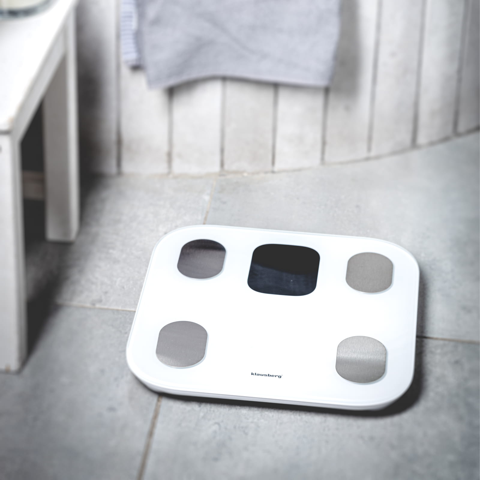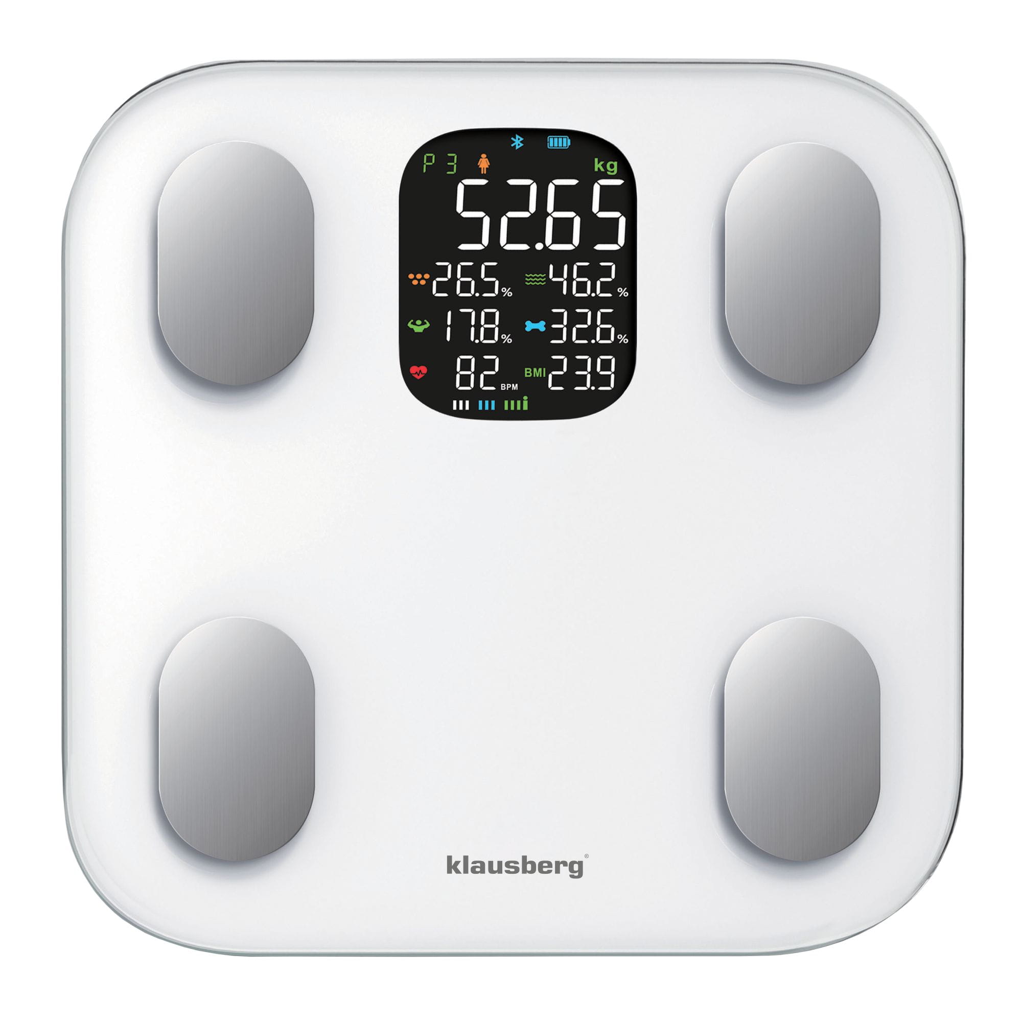 Personenwaage mit Körperfett- und Körperanalysewaage, Smart, BT, KLAUSBERG KB-7855 weiß