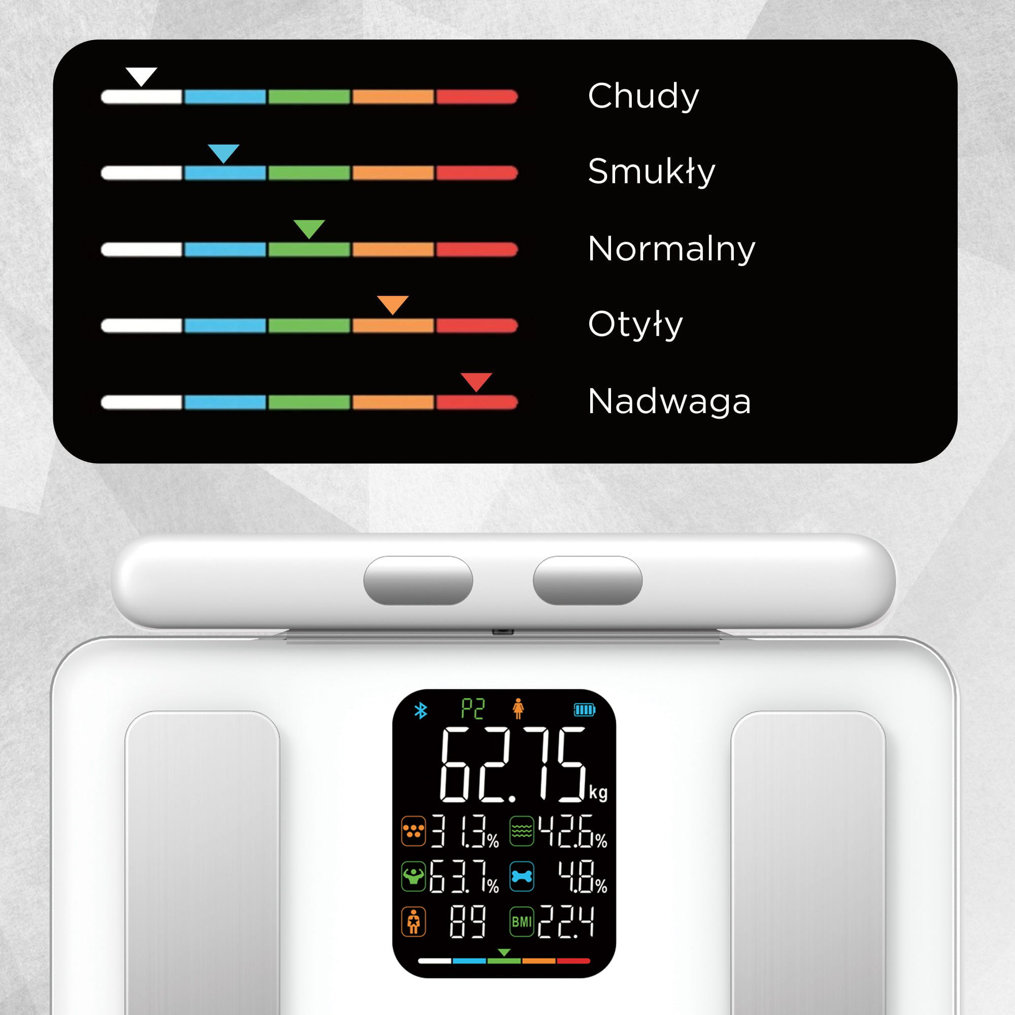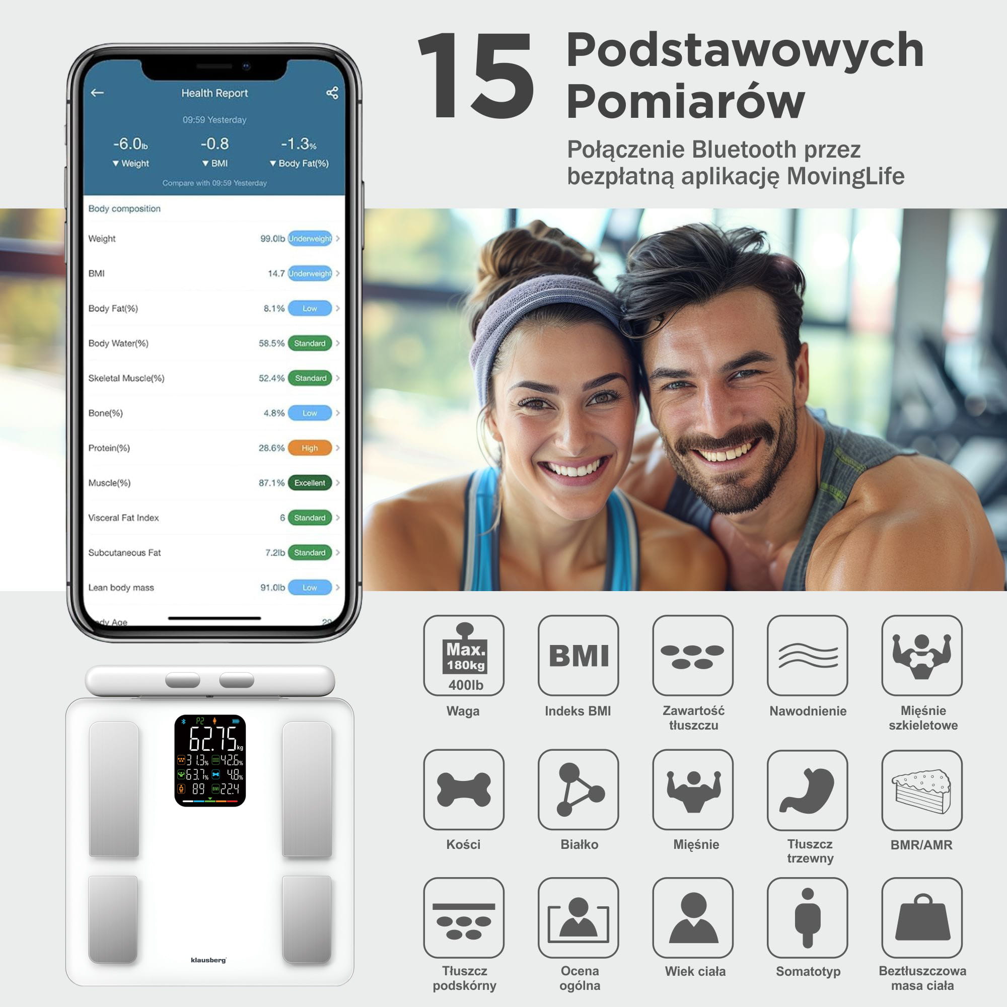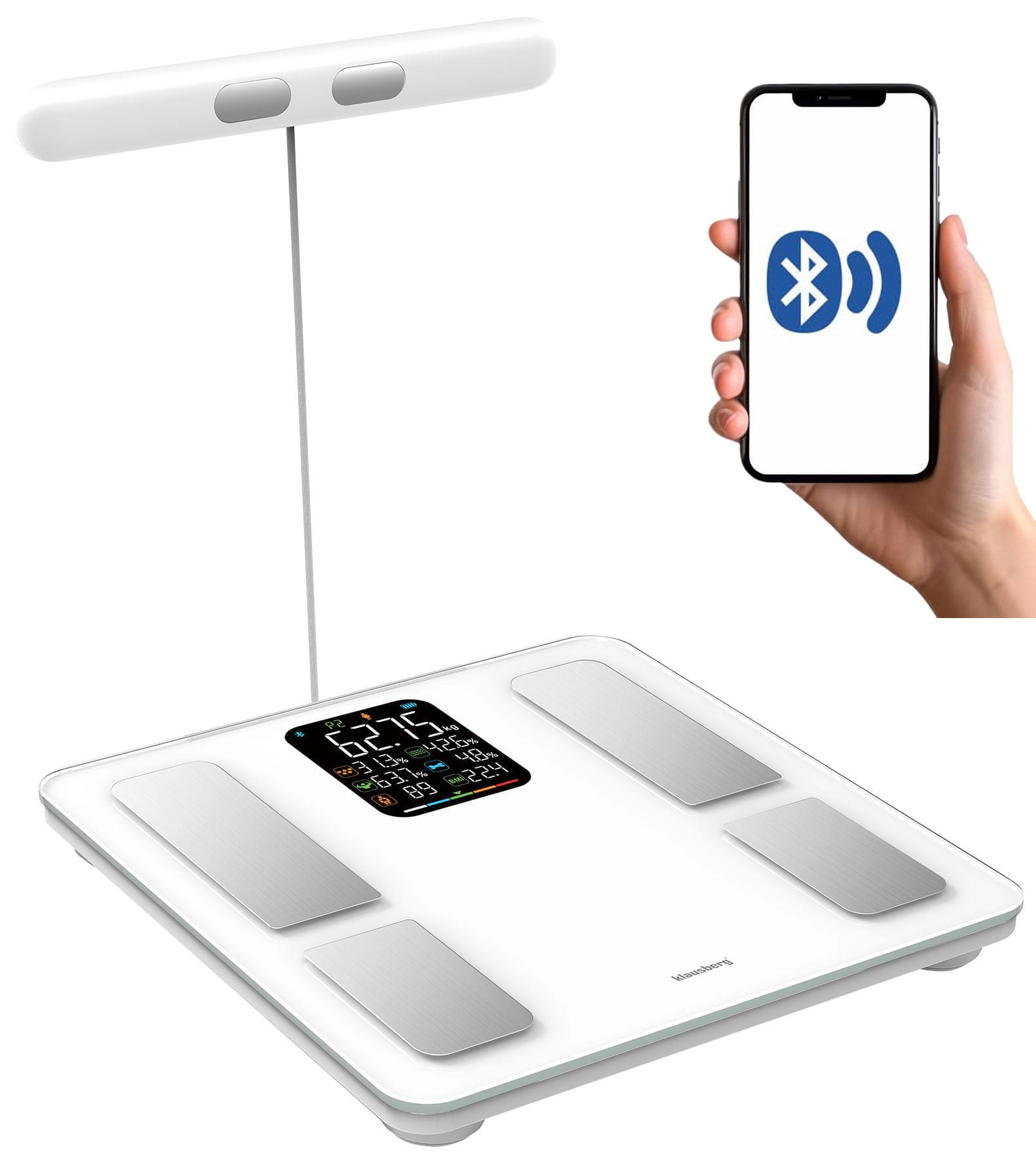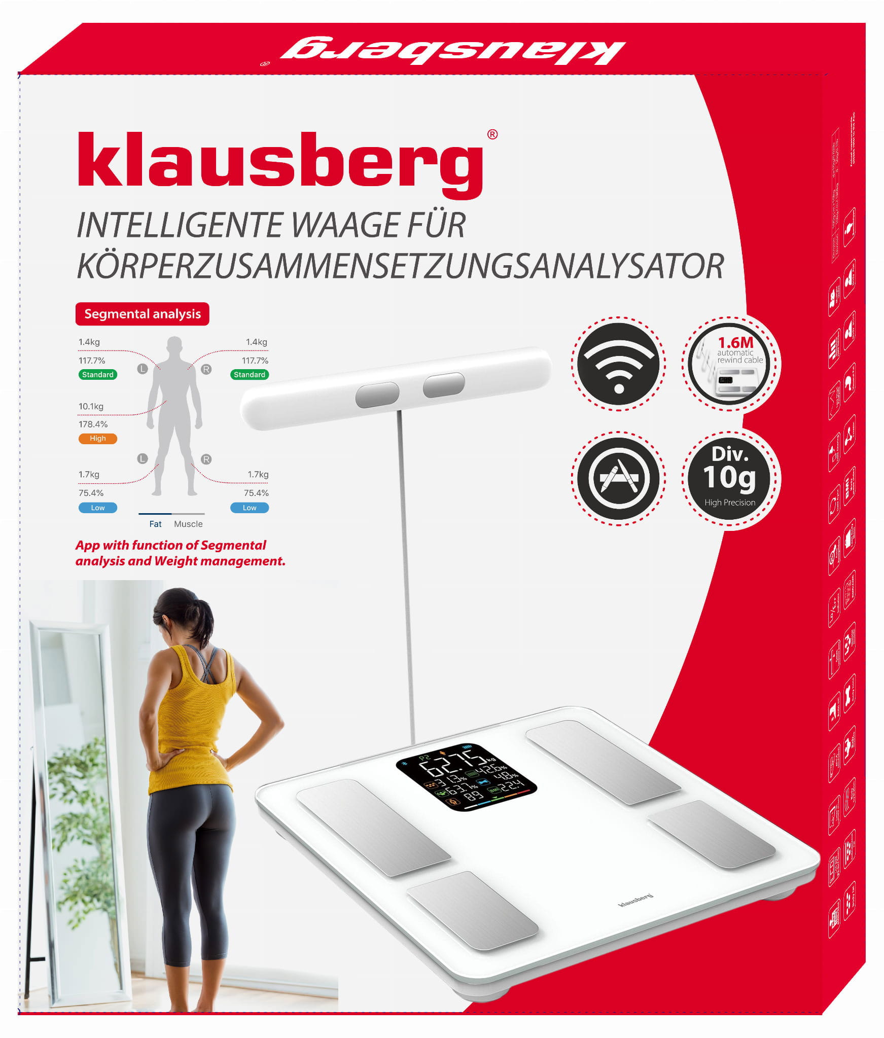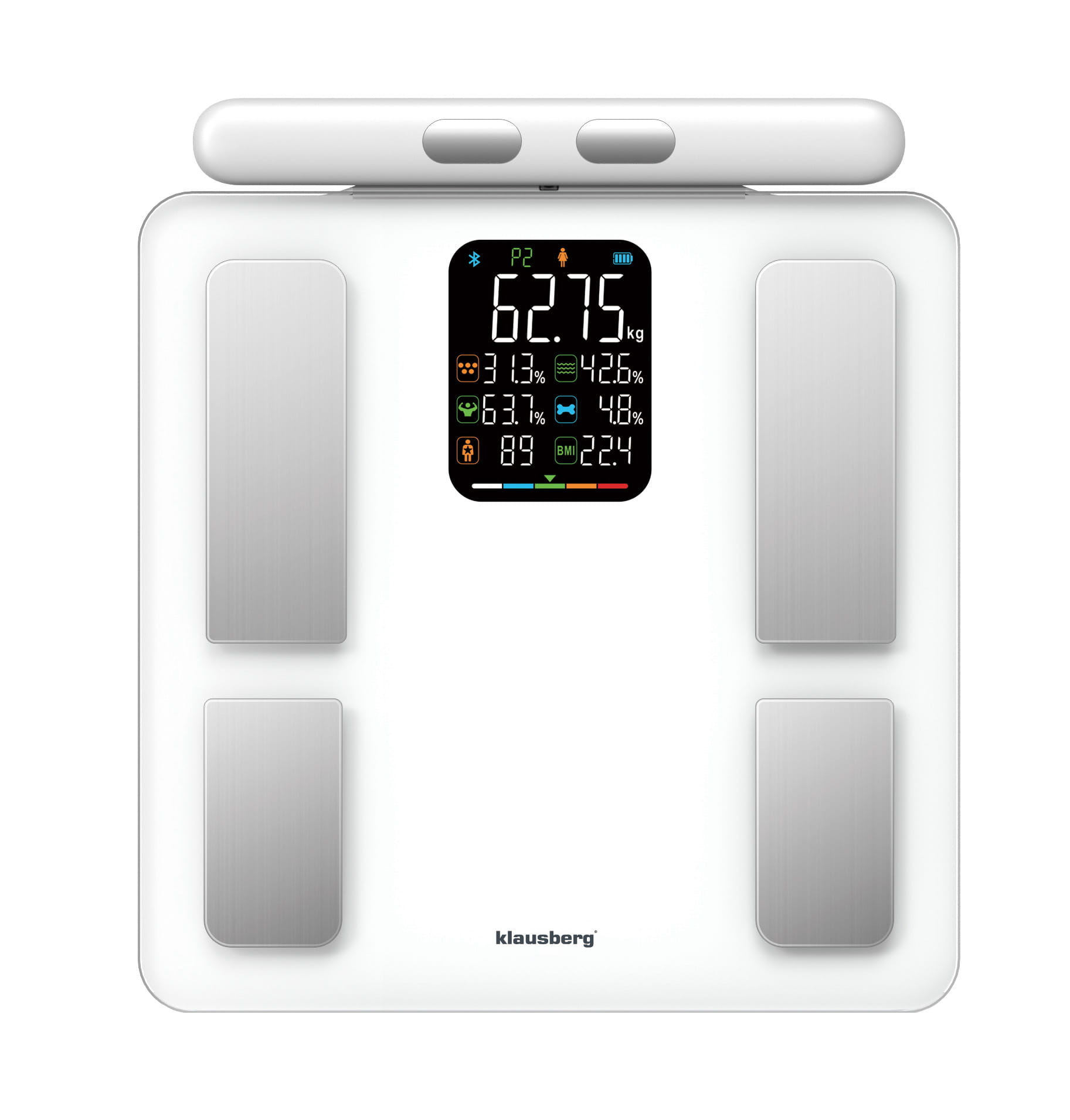 Personenwaage mit Körperfett- und Körperanalysewaage, Smart, BT, KLAUSBERG KB-7857 weiß