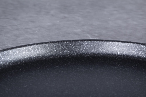 Granitbeschichtung ist eine Teflonbeschichtung, die mit Granitkörnern angereichert ist, um ihr eine größere Härte zu verleihen. Sie ist härter als Teflon, behält aber gleichzeitig die Vorteile von Teflon: Sie brennt nicht und verteilt die Wärme gut. Es vereint die Vorteile von Gusseisen- und Teflon-Kochgeschirr. Es hat alle Vorteile von Teflon, ist aber widerstandsfähiger gegen Beschädigungen und übertrifft darin sogar Keramikbeschichtungen.