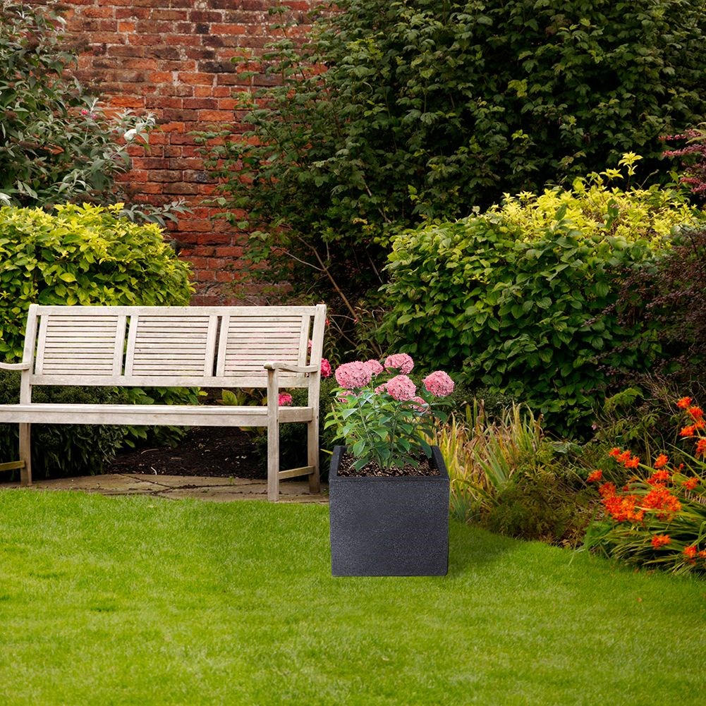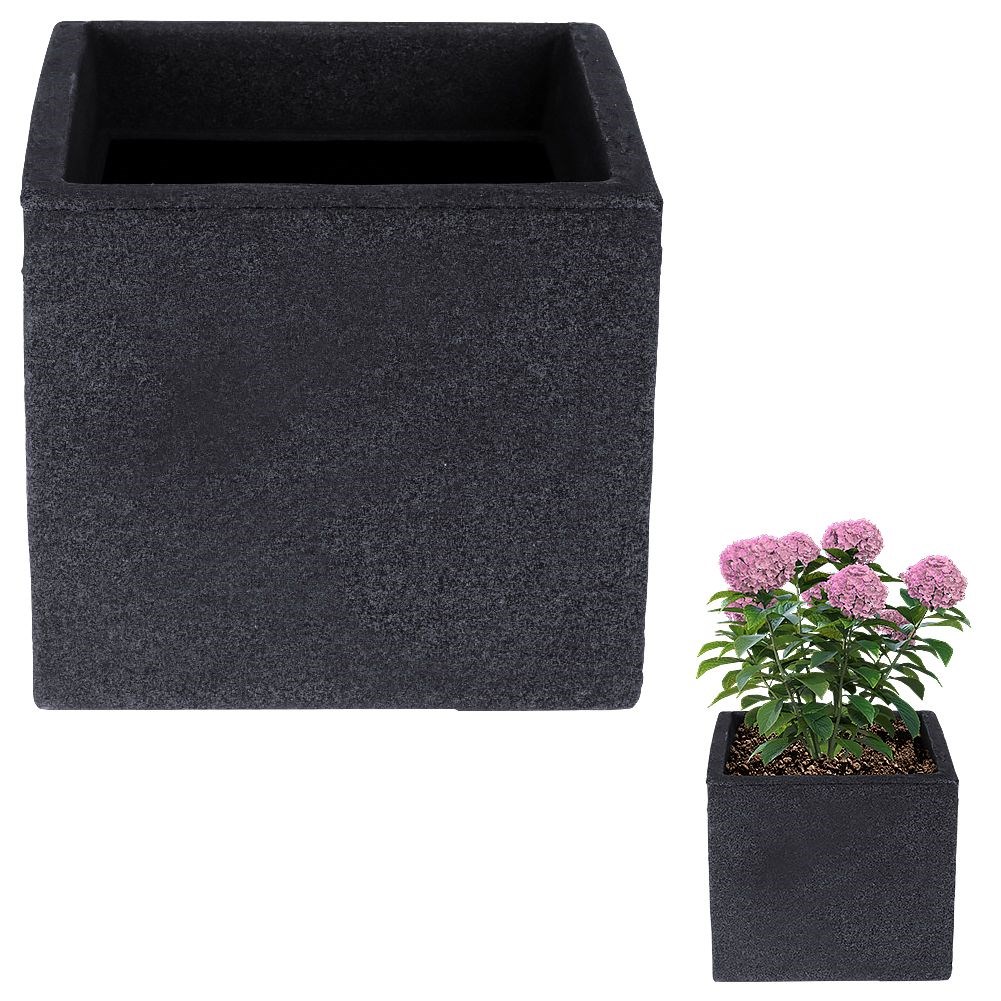 Blumentopf aus Material, das anthrazitfarbenen Stein imitiert. Beständig gegen Witterungseinflüsse. Perfekt für den Garten, die Terrasse oder die Einfahrt vor dem Haus.