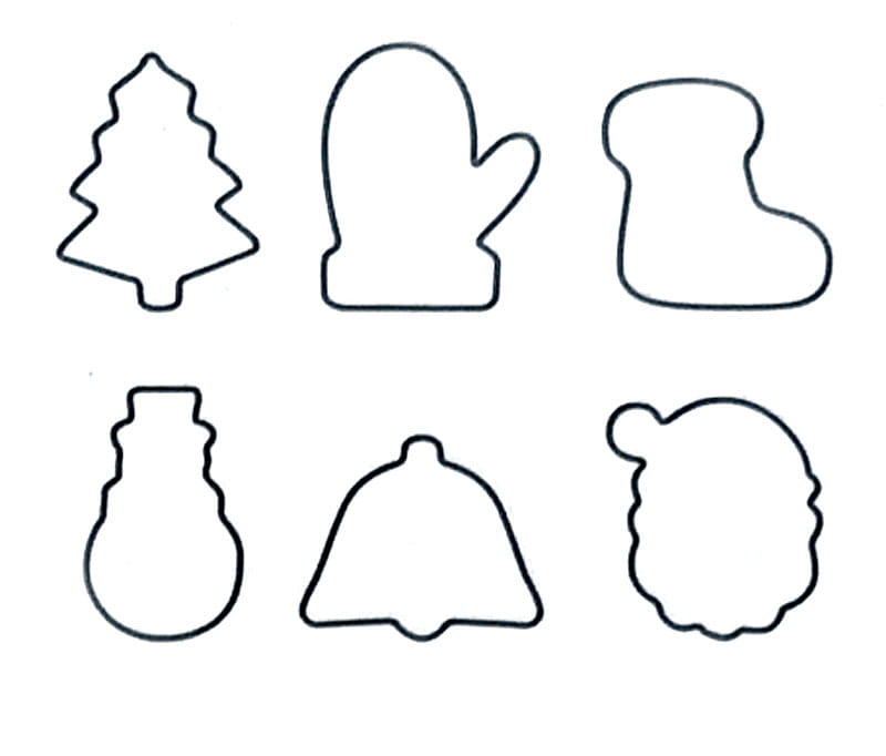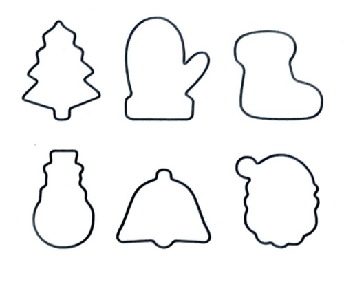 Das Set enthält Stanzer mit 6 weihnachtliche Motiven: Weihnachtsbäume, Sterne, Schneemänner, Glocken, Handschuhe und Weihnachtsmannschuhe.