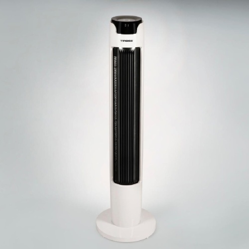 Moderner Säulenventilator mit Fernbedienung und Zeitschaltuhr TIROSS sorgt für einen natürlichen Wind, der an heißen Tagen effektiv und angenehm kühlt. Ausgestattet mit einem leistungsstarken 6-Gang-Motor, der durch Berührung gesteuert wird, lässt sich das Gerät leicht bedienen und an die individuellen Vorlieben anpassen. Ein intuitiv bedienbarer Bildschirm mit automatischer Abschaltung nach 30 Sekunden Inaktivität und eine zeitgesteuerte Ein-/Ausschaltfunktion ermöglichen es Ihnen, das Gerät so zu programmieren, dass es startet, bevor die Hitze einsetzt. Und dank des bequem abnehmbaren Gehäuses ist der Ventilator leicht zu reinigen, was den Komfort auch nach längerem Gebrauch erhöht.
