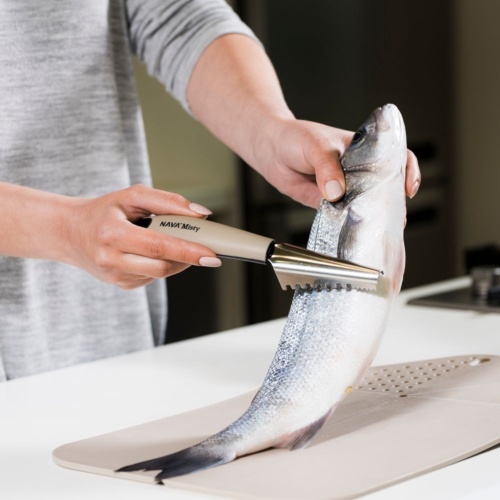 Nützlicher Küchenfischschaber, aus dauerhaften Materialien hergestellt. Dadurch können Sie den Fisch der Waage leicht und schnell reinigen. Ideal für Menschen, die gerne Fische zu Hause, für Angler sowie in der Gastronomie vorbereiten. Mit seiner Hilfe ist die Reinigung des Fisches sehr einfach. Es funktioniert sowohl für kleinere als auch für größere Fische. Nützlich in jedem Haus.Originalprodukt der griechischen Nava -Marke von Misty Kitchen Utensils.Nach europäischen Standards hergestellt.