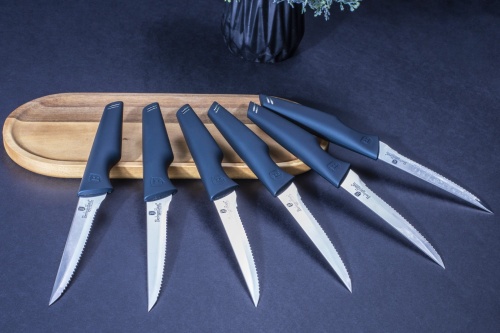 6er-Set Steak- oder Pizzamesser von BERLINGER HAUS aus der Serie Aquamarine. Die Messer sind aus rostfreiem Stahl gefertigt.
