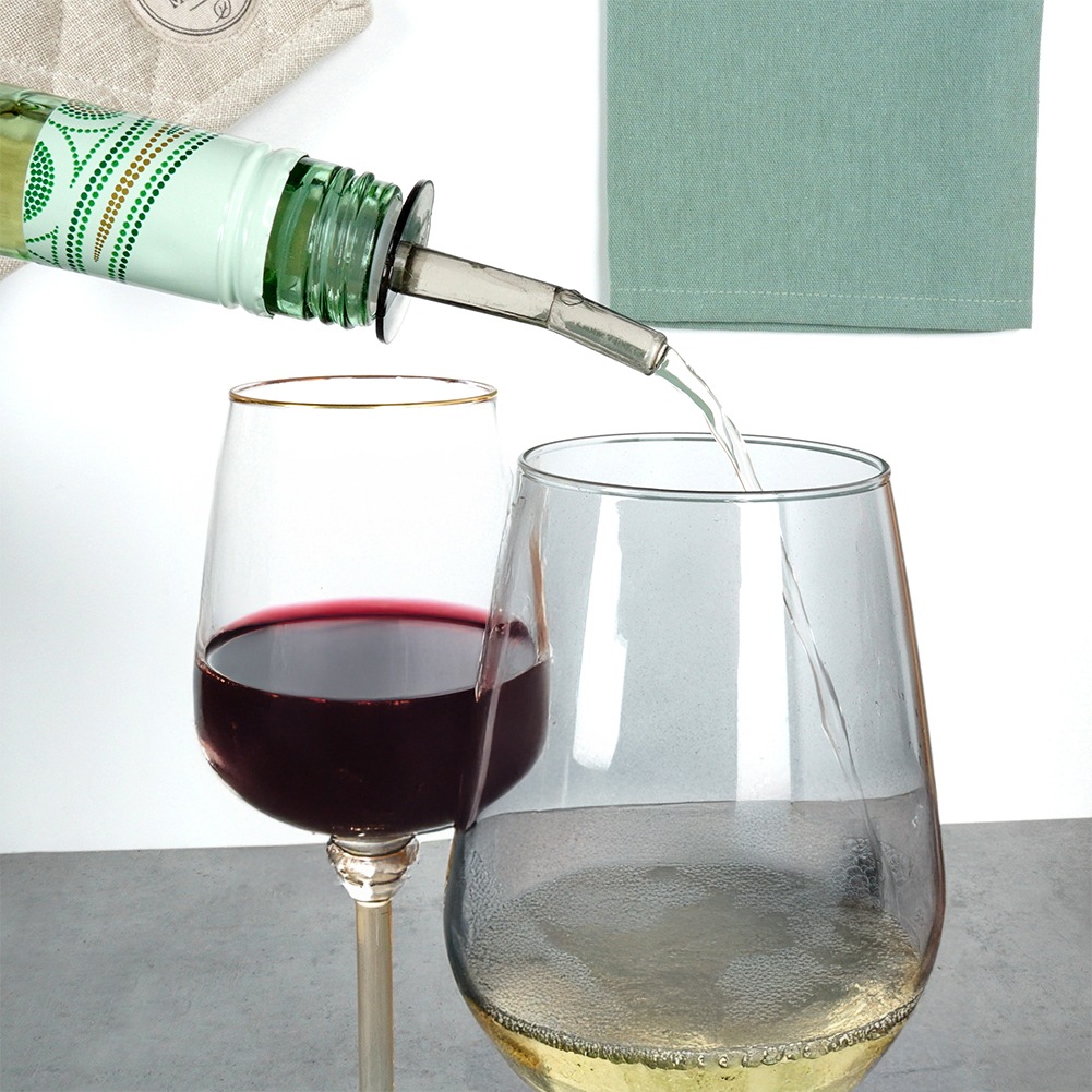Ein Satz von zwei Flaschen. Besonders für Flaschen Wein, Wodka oder andere Alkohol empfohlen, werden sie auch für eine Flasche mit Essig, Olivenöl und sogar gewürztem Sirup arbeiten. Sie sorgen für ein bequemes Gießen. Sie passen die meisten Flaschen. Nach europäischen Standards hergestellt.