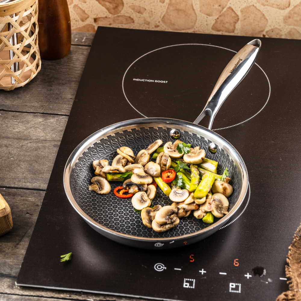 Dank dieser Technologie heizt sich die Pfanne schnell und gleichmäßig auf und verkürzt die Kochzeit.