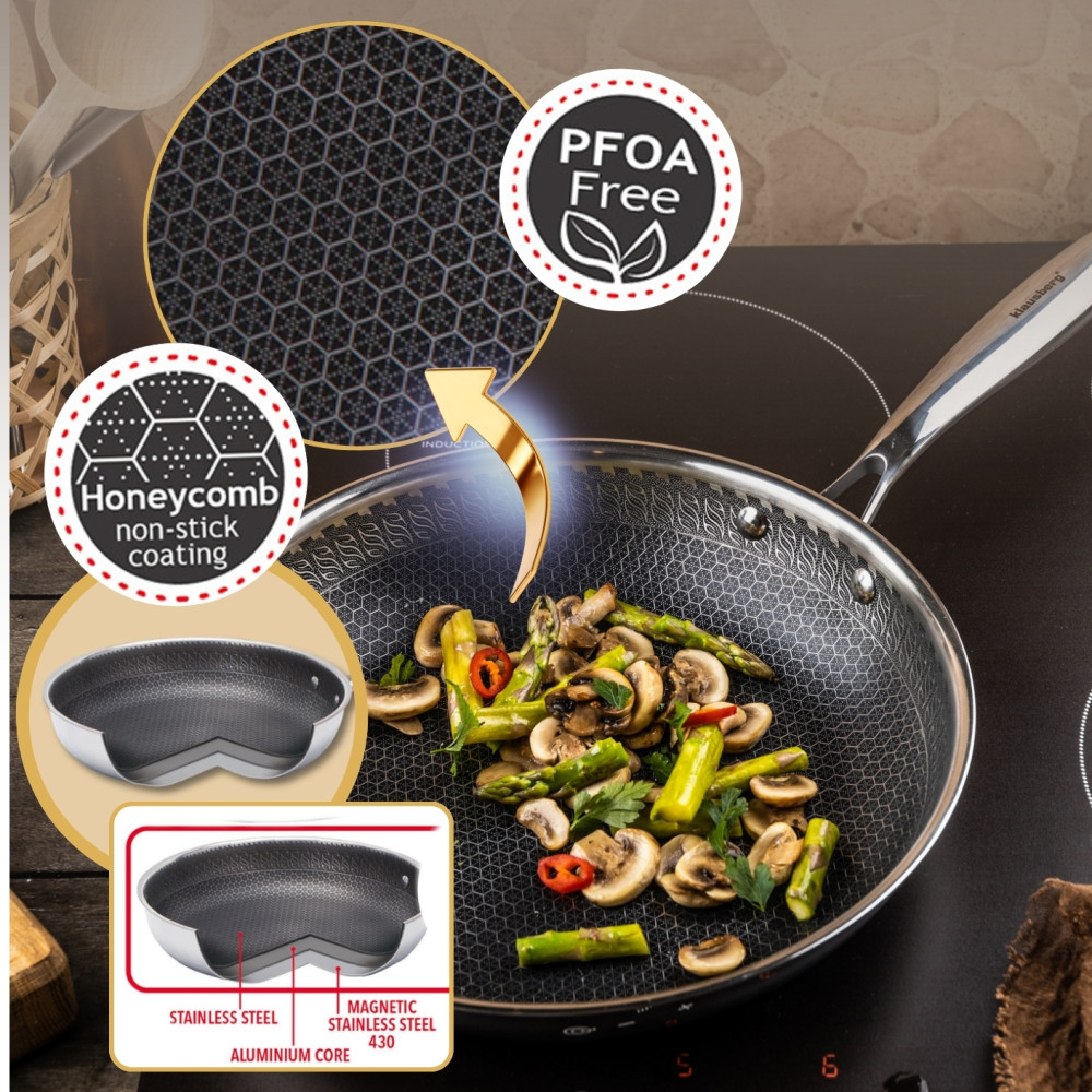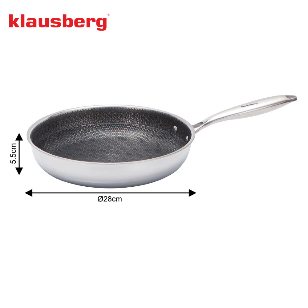Stahlbratpfanne, Antihaft-Wabenbeschichtung, 28 cm, Edelstahl 304, PFOA-frei KLAUSBERG KB-9023
