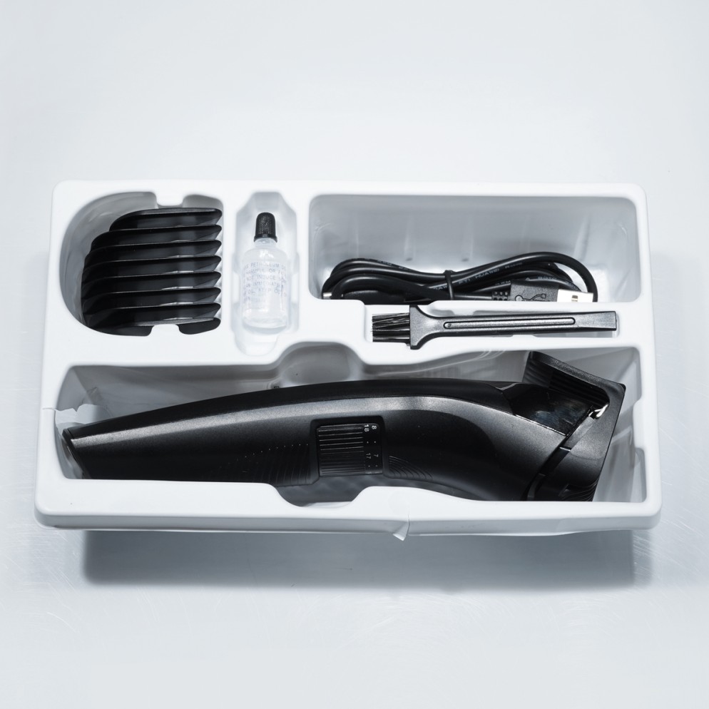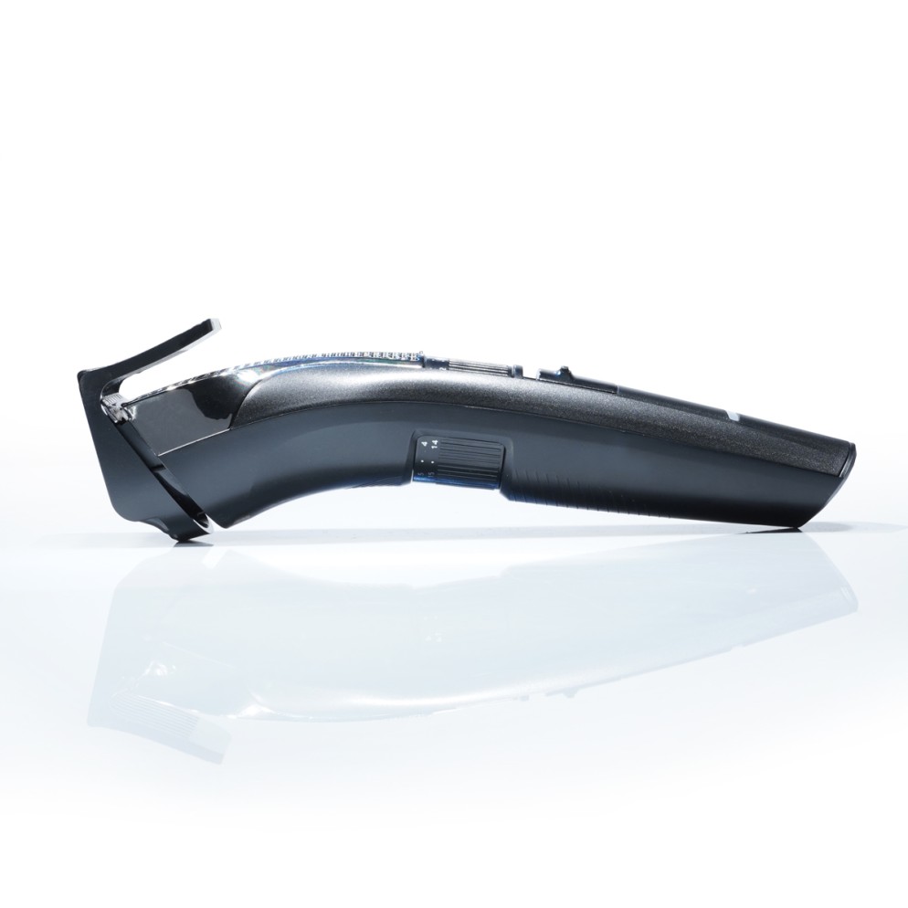 Professioneller Haarschneider mit kabelgebundenem Betrieb und einem 600-mAh-Akku, der bis zu 90 Minuten ununterbrochenen Betrieb garantiert.