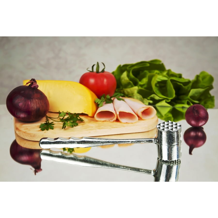Tłuczek do mięsa wykonany z aluminium.