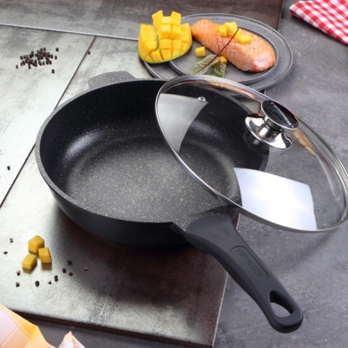 Eine handliche, tiefe Bratpfanne mit Antihaft-Marmorbeschichtung ist die perfekte Lösung für Kochanfänger.