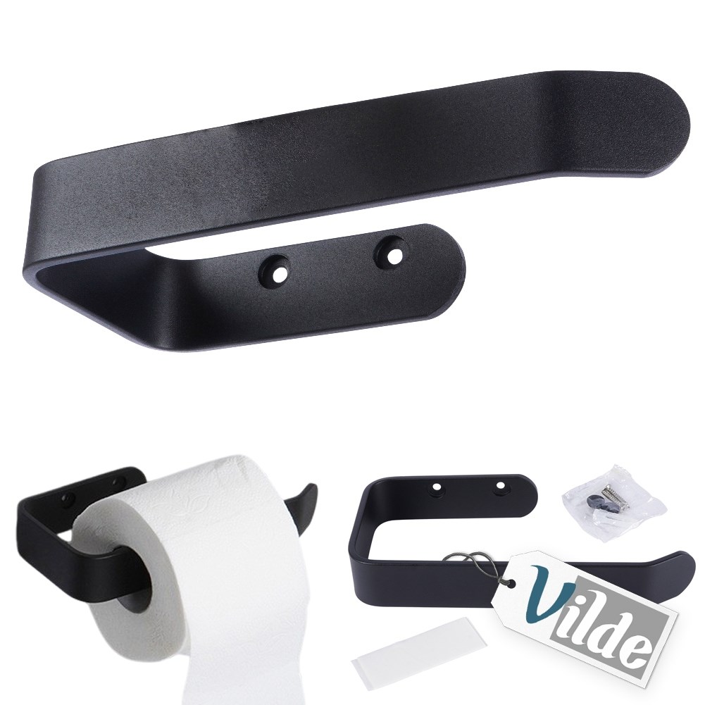Klassischer Toilettenpapierhalter. Hergestellt aus soliden Materialien in modischem Schwarz. Entworfen im klassischen Stil. Durch die Form des Griffs ist die Handhabung sehr angenehm und Sie können das Toilettenpapier schnell und einfach wechseln. Möglichkeit der Montage des Halters auf Fliesen, Wänden oder anderen Oberflächen.Original Vilde-Produkt.Hergestellt nach europäischen Standards.