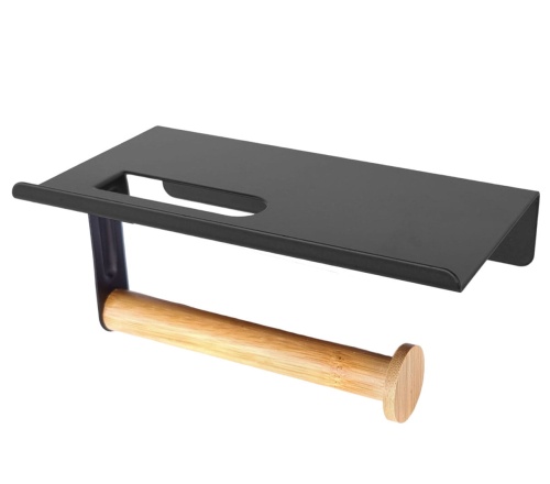 Er ist aus Stahl und Bambusholz gefertigt. Sie können ihn ganz einfach an einer geeigneten Stelle an der Wand befestigen, so dass Sie jederzeit leichten Zugang zu Ihrem Toilettenpapier haben.