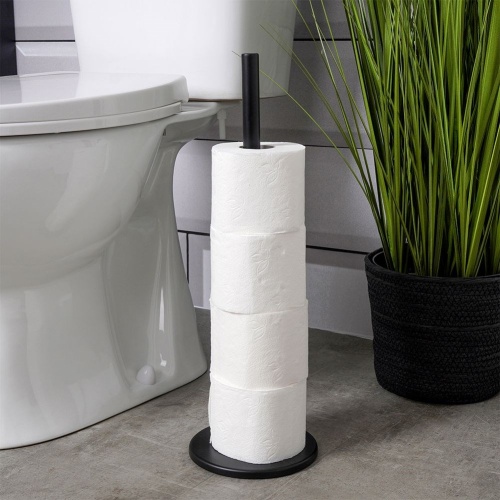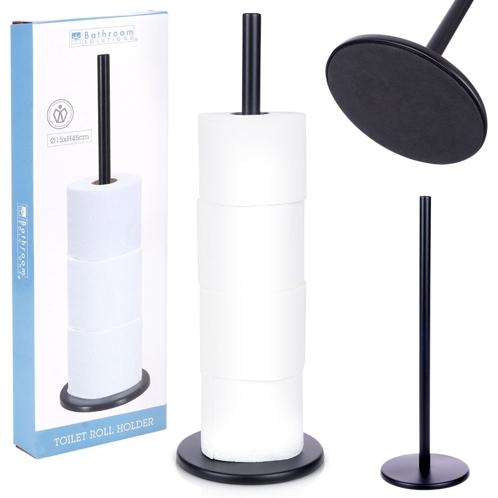 Badezimmer-Toilettenpapierständer aus Edelstahl in mattschwarzer Farbe. Es bietet Platz für 5 Rollen Toilettenpapier. Nimmt wenig Platz ein.