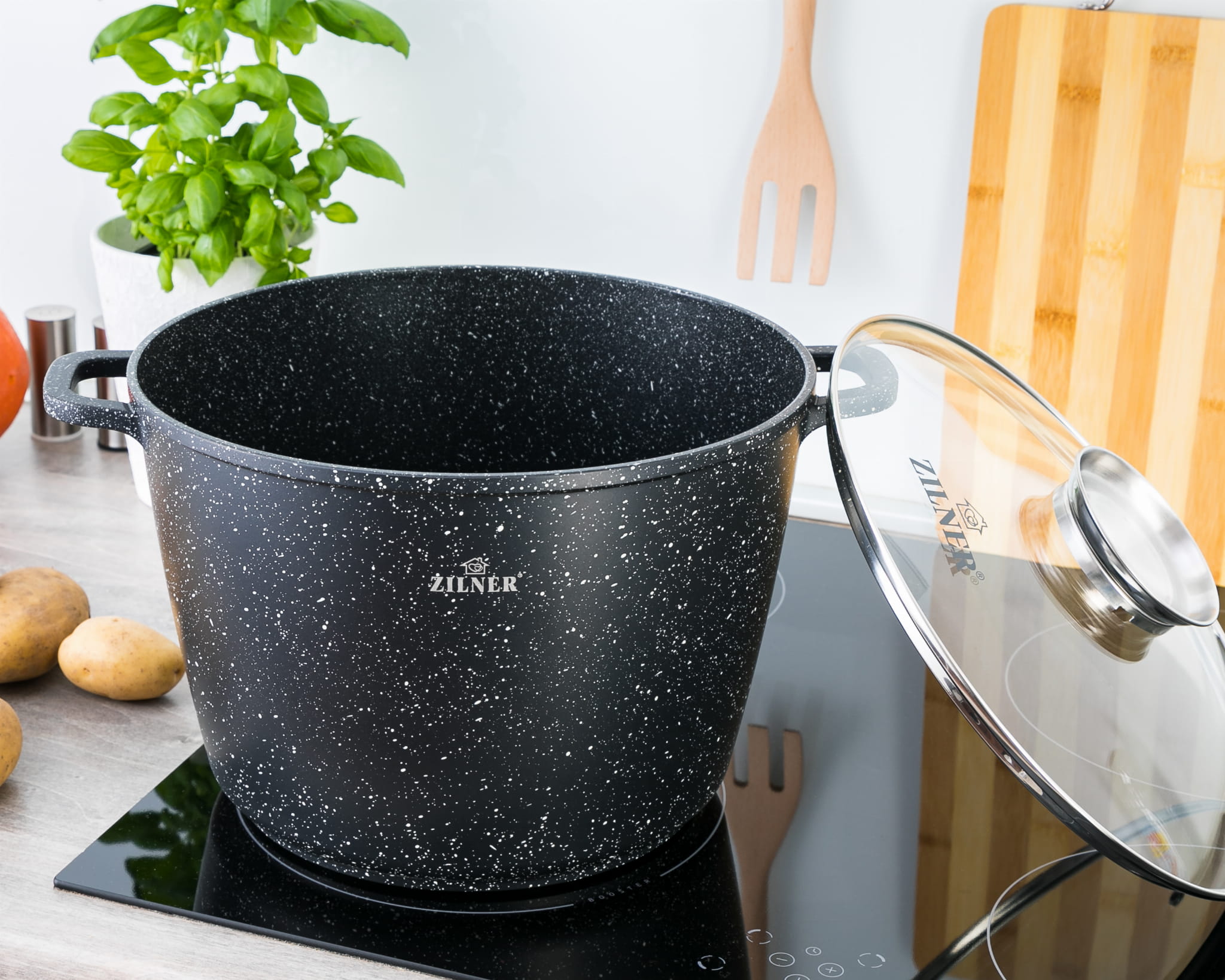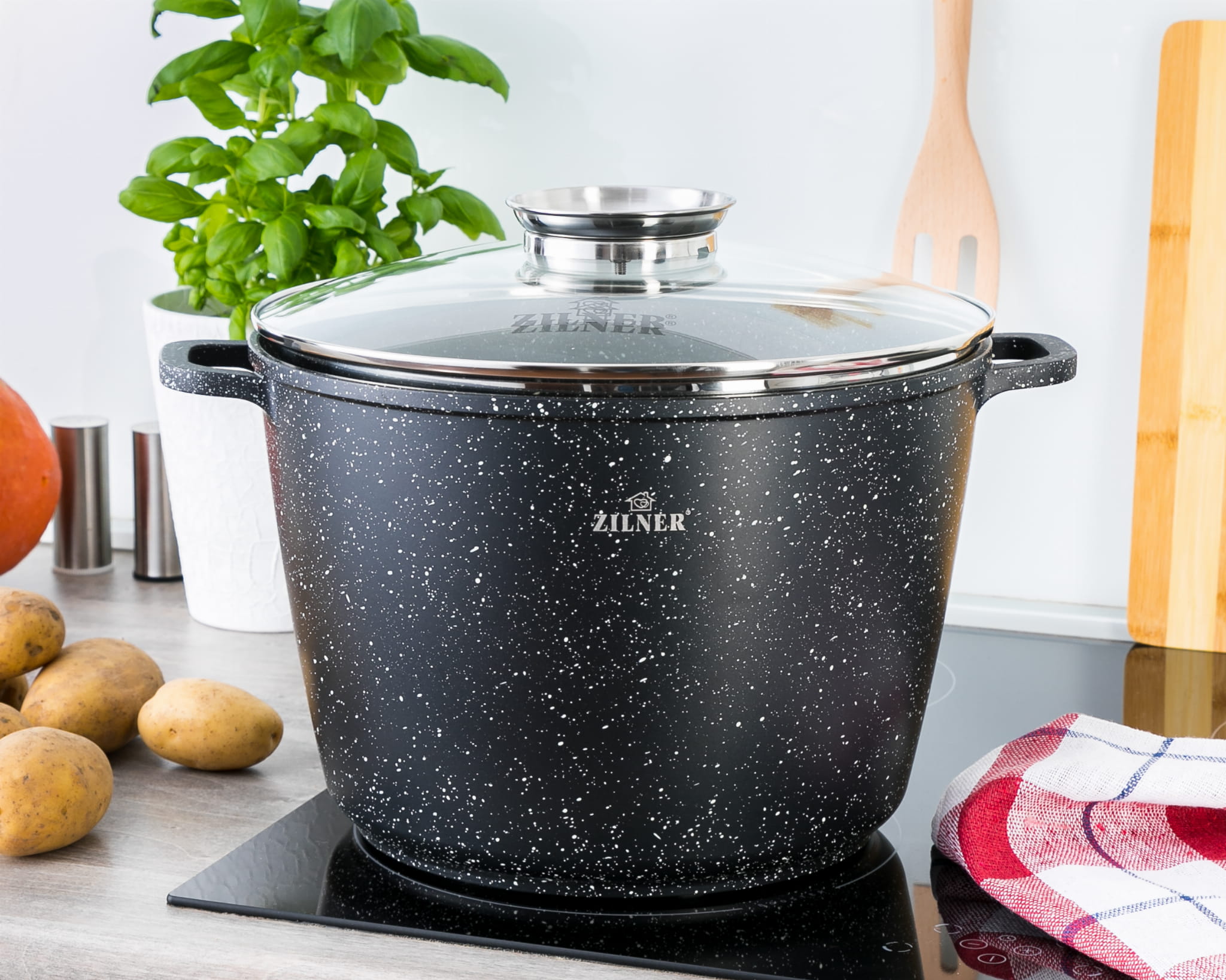 Töpf Kochtopf 6.2L 24cm mit Glasdeckel Marmorbeschichtung ZILNER ZL-7009