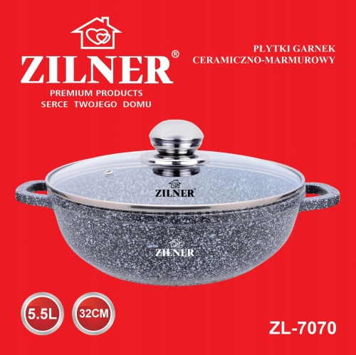 Töpf Kochtopf Wok 5.5L 32cm mit Glasdeckel Keramikbeschichtung ZILNER ZL-7070