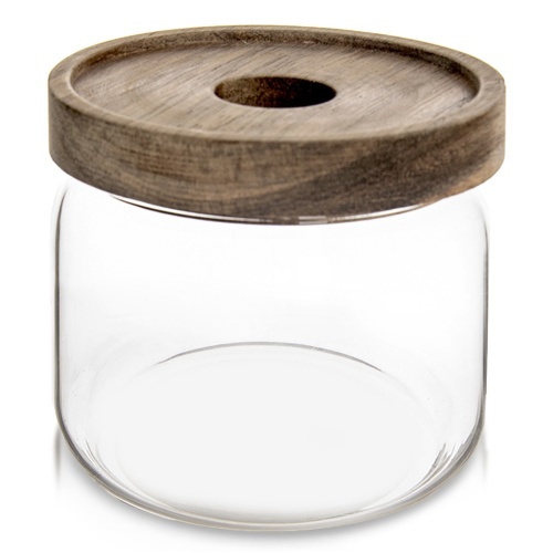 - Widerstandsglas und Holzdeckel- Ein Glas aus Borosila -Glas, das durch hohe Beständigkeit gegen die Temperaturänderung gekennzeichnet ist. Akazienholzkappe.