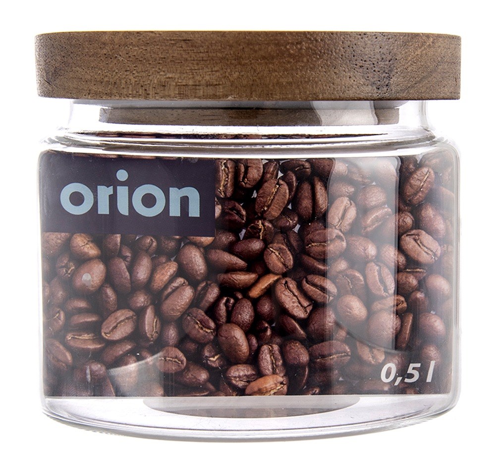 Lebensmittelvorratsbehälter mit einem Holzdeckel mit einer Dichtung. Geeignet für die Aufbewahrung verschiedener Lebensmittel. Findet viele Anwendungen in der Küche. Dank einer engen Kappe mit einer Silikondichtung halten gelagerte Produkte die Frische länger. Das transparente Glas ermöglicht es uns, den Inhalt des Containers leicht zu überprüfen und explizit anzuzeigen. Durch das Speichern von Produkten in einem Behälter können Sie den Küchenraum organisieren.Originalprodukt der tschechischen Marke ORION.Nach europäischen Standards hergestellt.