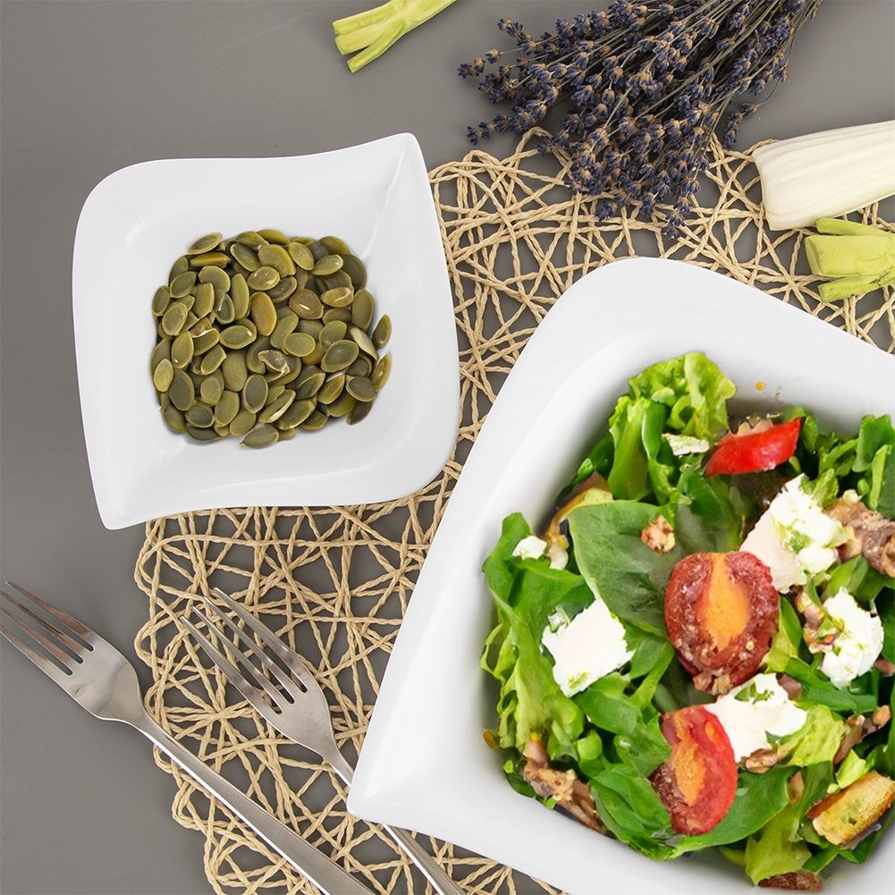- MODERNES DESIGN- Entworfen in modischen weißen Farben. Die Schale hat das elegante Aussehen eines unregelmäßigen Quadrats mit leicht abgerundeten Kanten. Zusammen mit anderem Geschirr sieht es auf dem Tisch wunderschön aus.