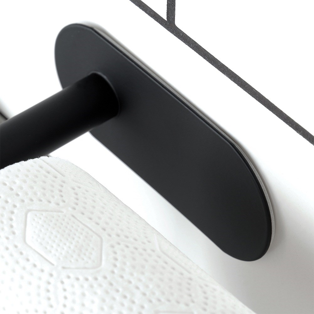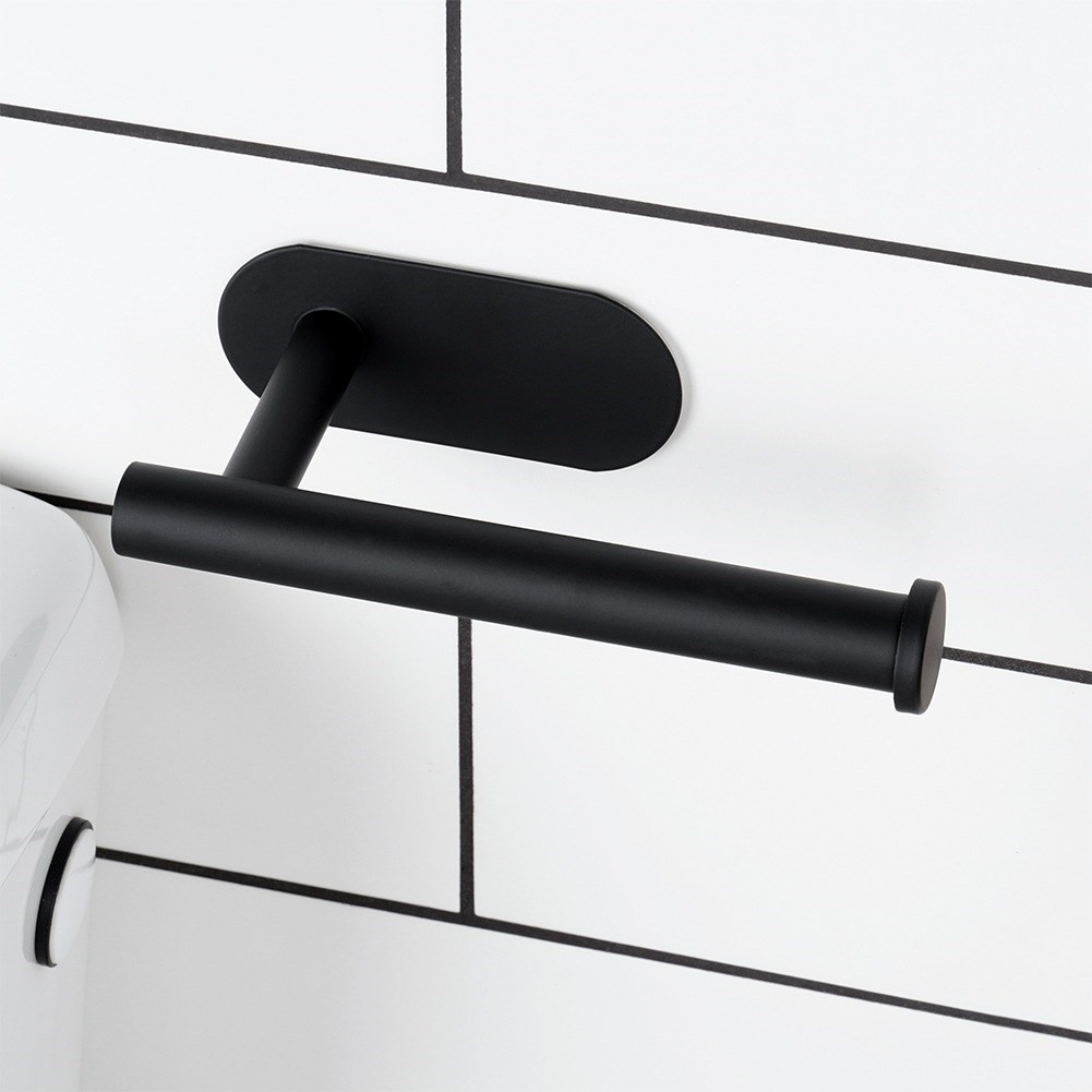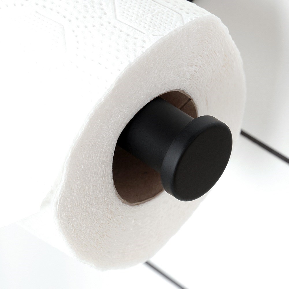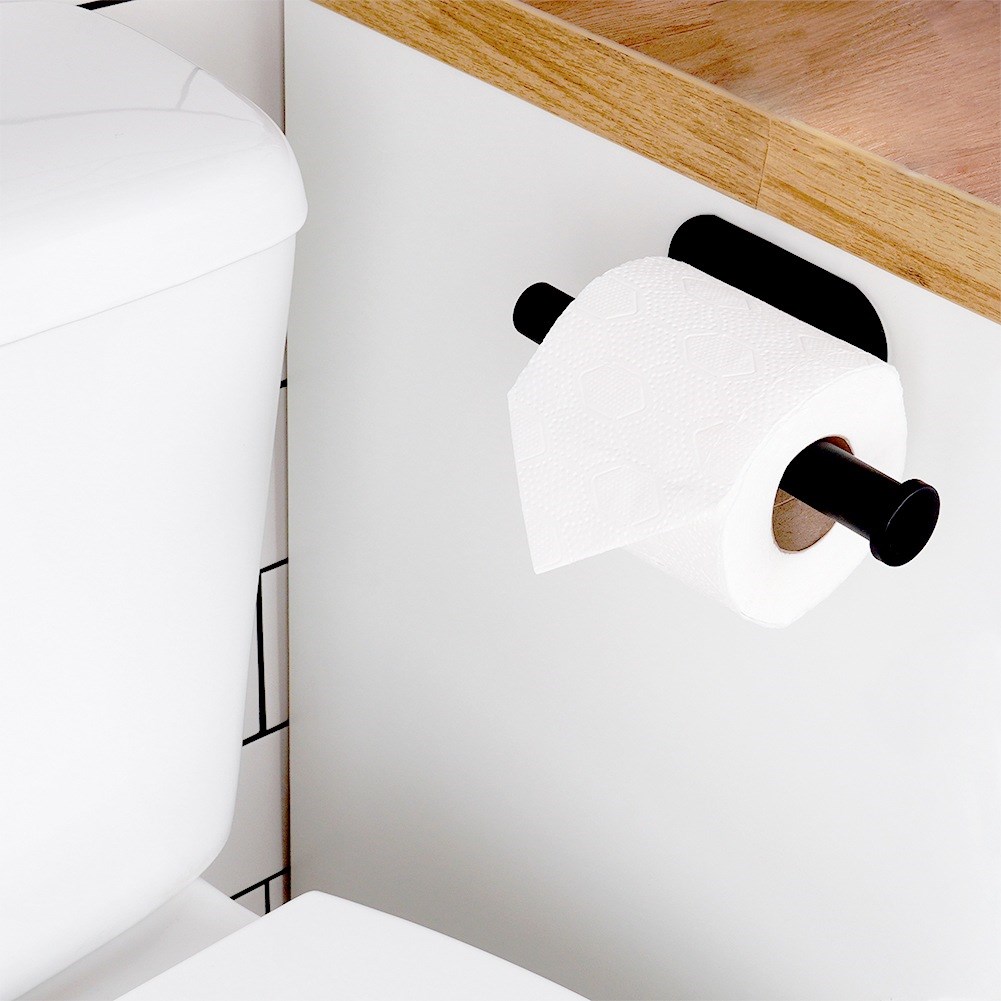 Mit doppelseitigem Klebeband befestigter Toilettenpapierhalter für das Badezimmer. Aus schwarzem Edelstahl. Nützlich in jedem Badezimmer.