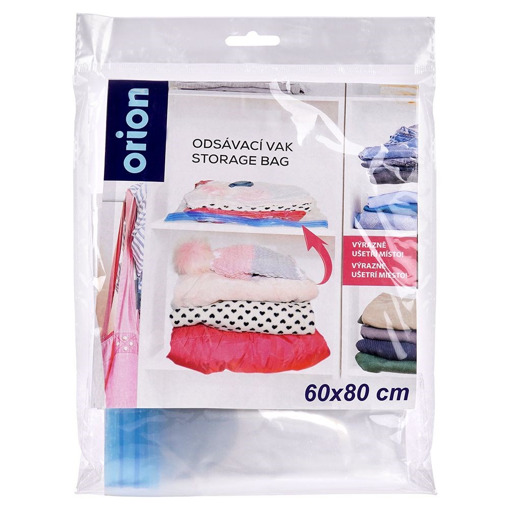 Ein Vakuumbeutel zur Aufbewahrung von Kleidung, Spielzeug oder zusätzlicher Bettwäsche. Dadurch gewinnen Sie mehr Platz bei der Aufbewahrung von Kleidung und Bettwäsche. Die Beutel schützen die gelagerten Produkte vor Staub, Schmutz, Milben und Motten. Extrem einfach zu bedienen. Nachdem wir den Beutel mit Dingen gefüllt haben, saugen wir die Luft mit einem Staubsauger oder einer Saugpumpe an, wodurch wir das Volumen des Beutels reduzieren und Platz gewinnen.Originalprodukt der tschechischen Marke Orion.Hergestellt nach europäischen Standards.
