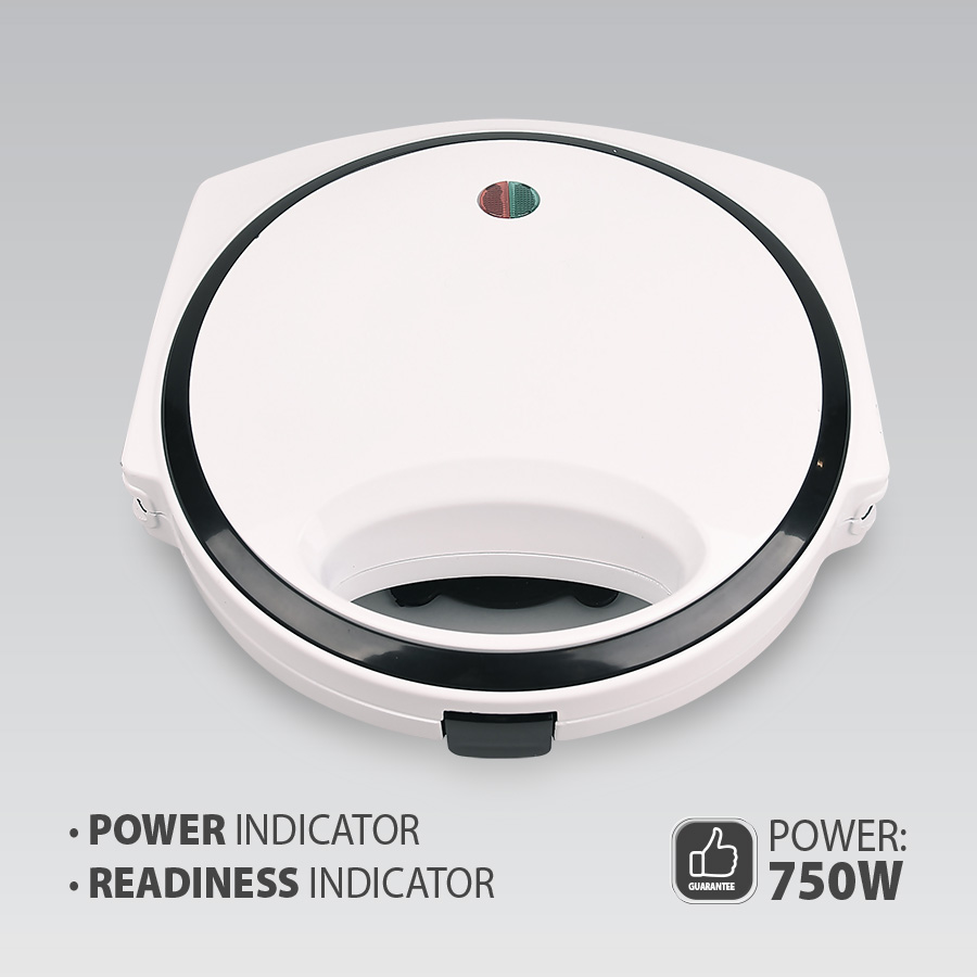 Das Waffeleisen Maestro MR-714 ermöglicht Ihnen die Zubereitungzwei Waffeln im Format 11 × 11 cm, was es zu einer idealen Lösung für Familien und Menschen macht, die schnelle, eindrucksvolle Desserts mögen.