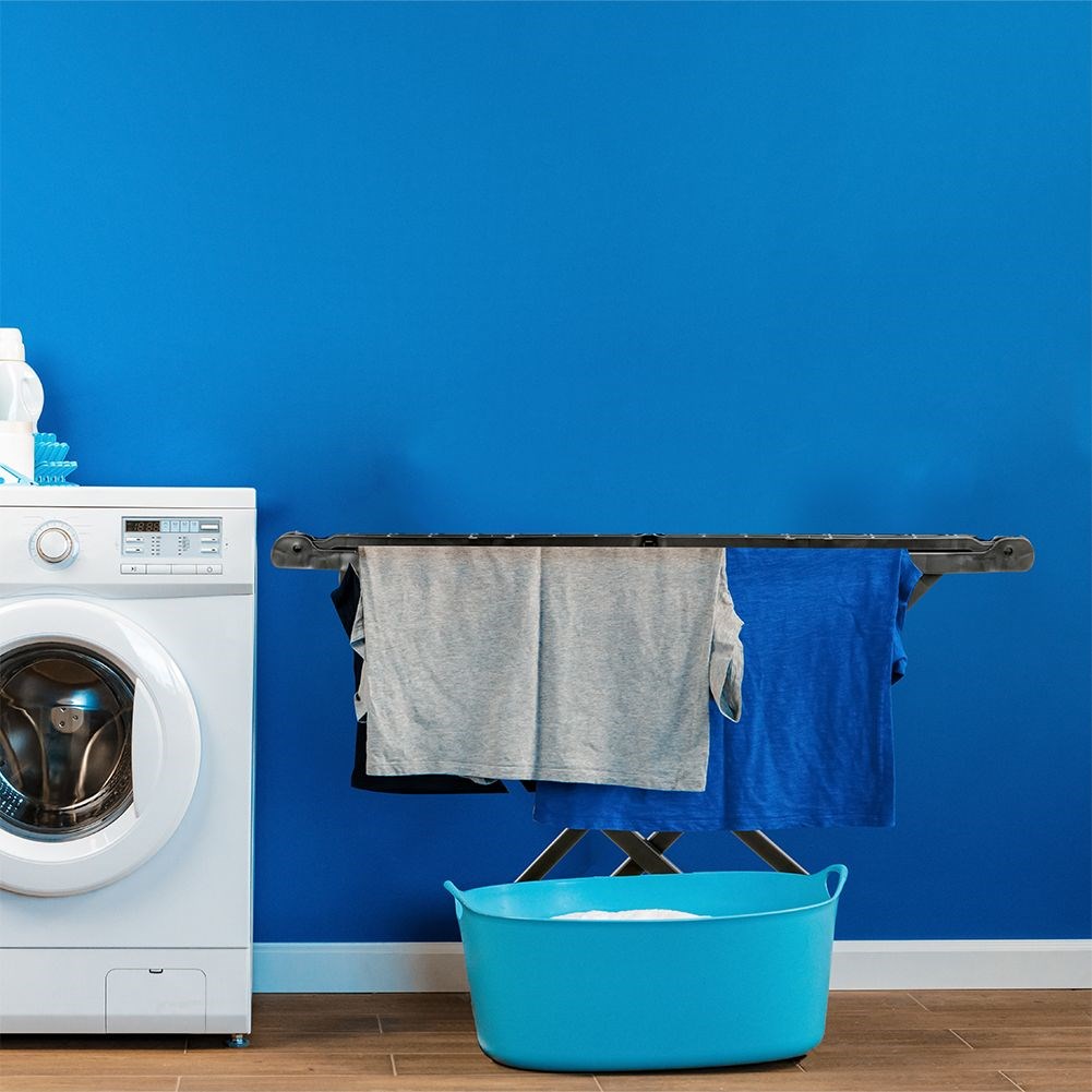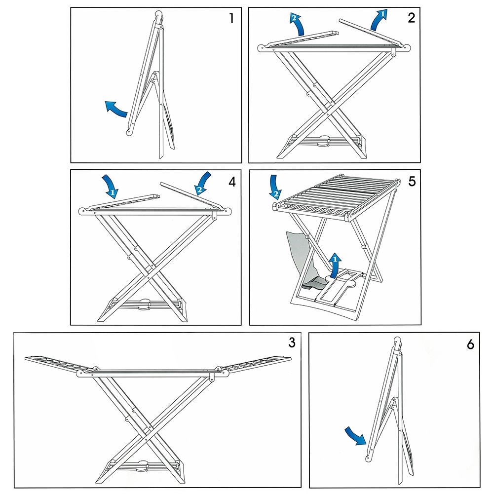 - EINFACH ZU BEDIENEN- Einfacher Klapp- und Aufklappmechanismus. Der zusammengeklappte Trockner lässt sich bequem verstauen.